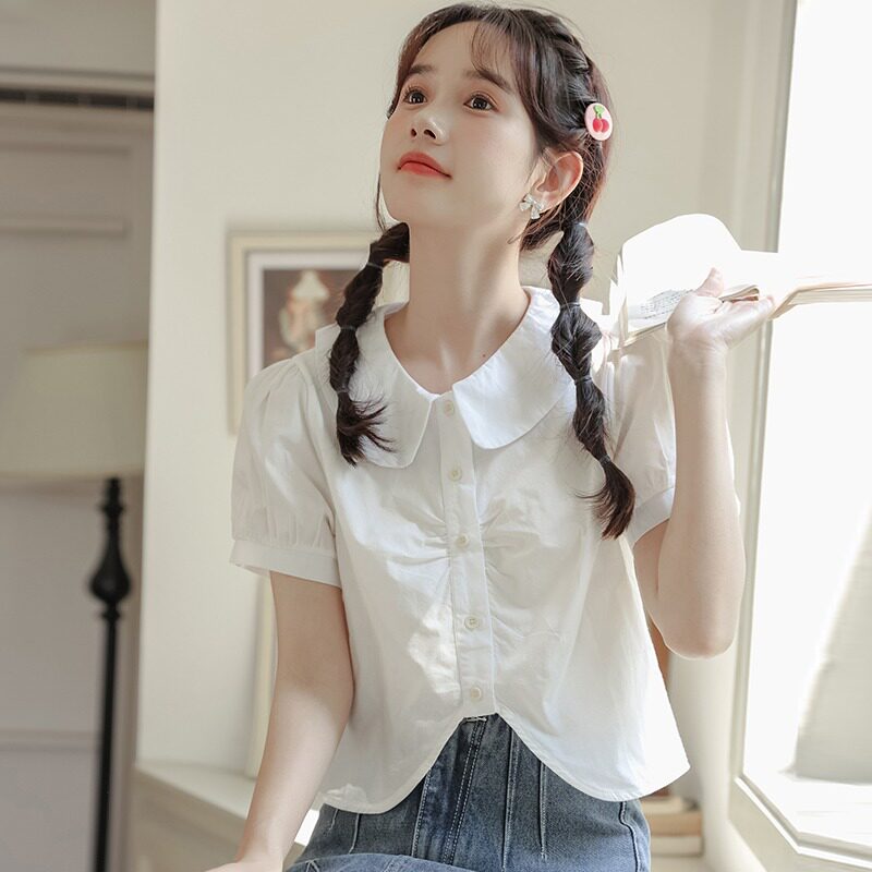 Летняя приталенная рубашка, рукава фонарики