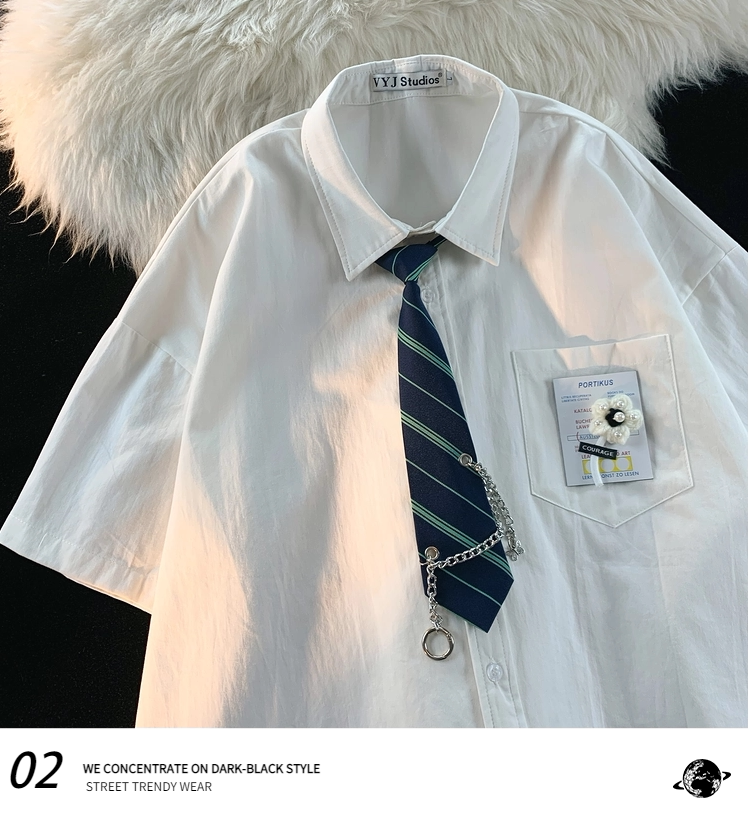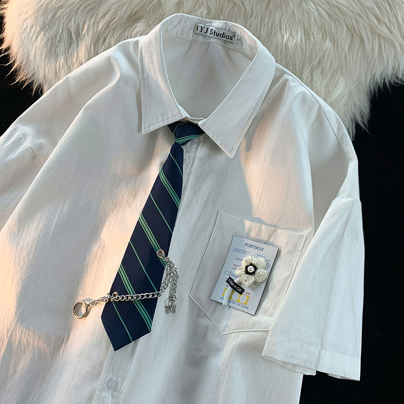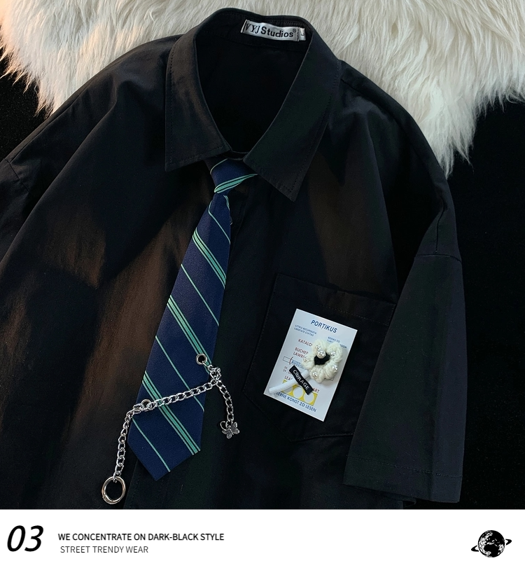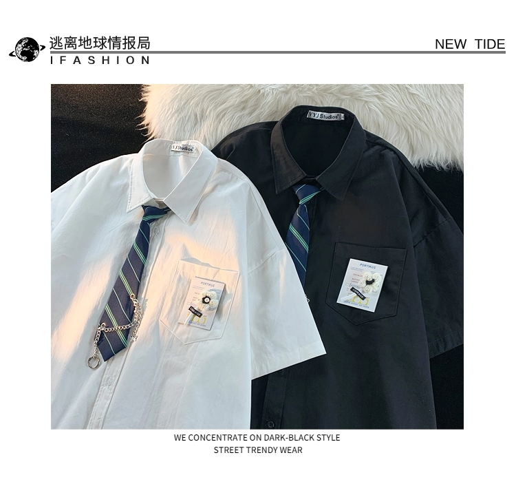 逃离地球 Японский галстук, летняя рубашка для влюбленных, короткий рукав, оверсайз