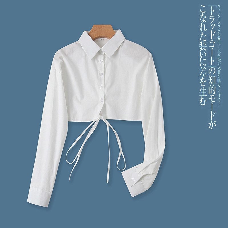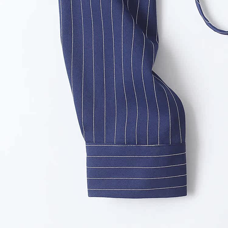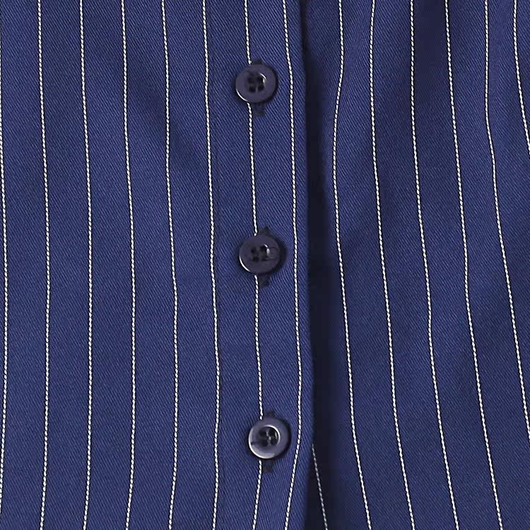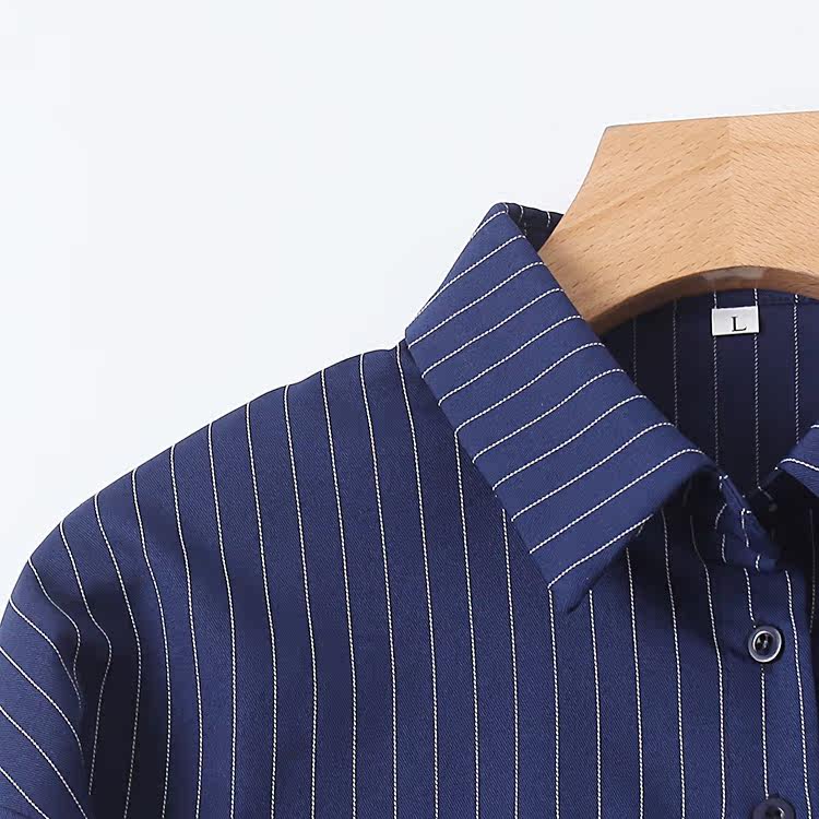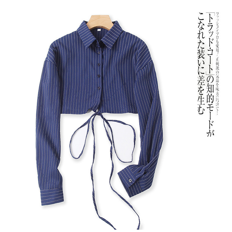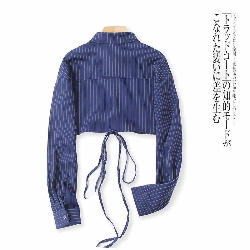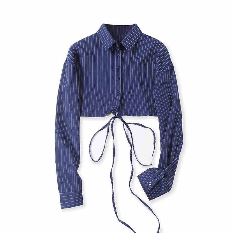 Короткая рубашка, весенний новый стиль, внешняя торговля, женский топ с длинными рукавами и лацканами в полоску с вертикальной грудью и поясом 9212