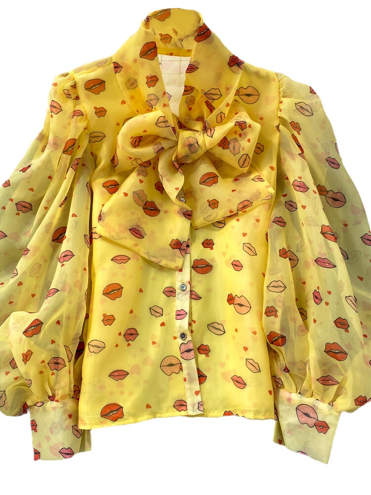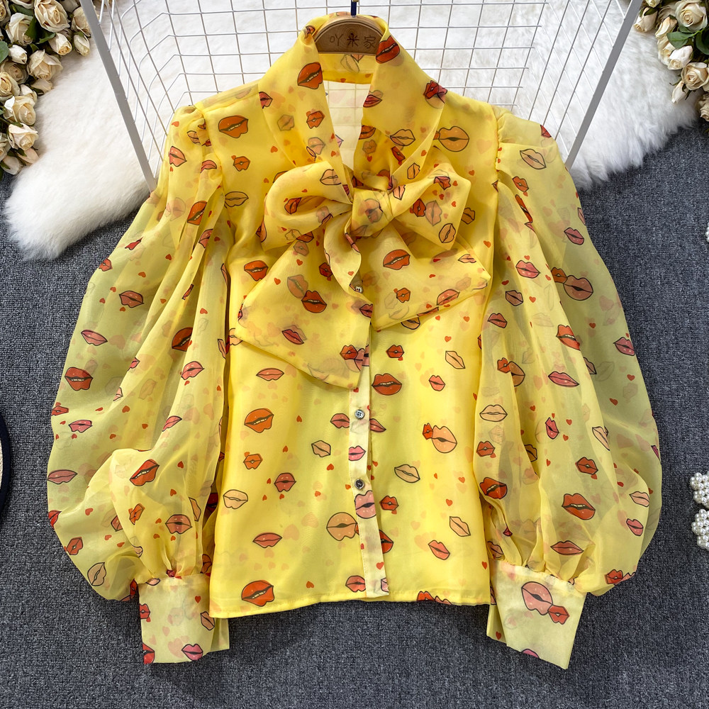 Ретро дизайнерский милый фонарь с бантиком с подсветкой, лонгслив, нарукавники, рубашка для отдыха, тренд сезона