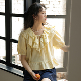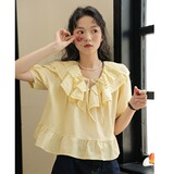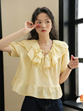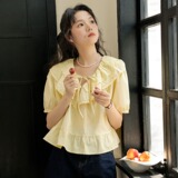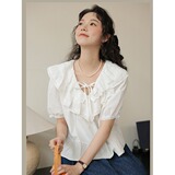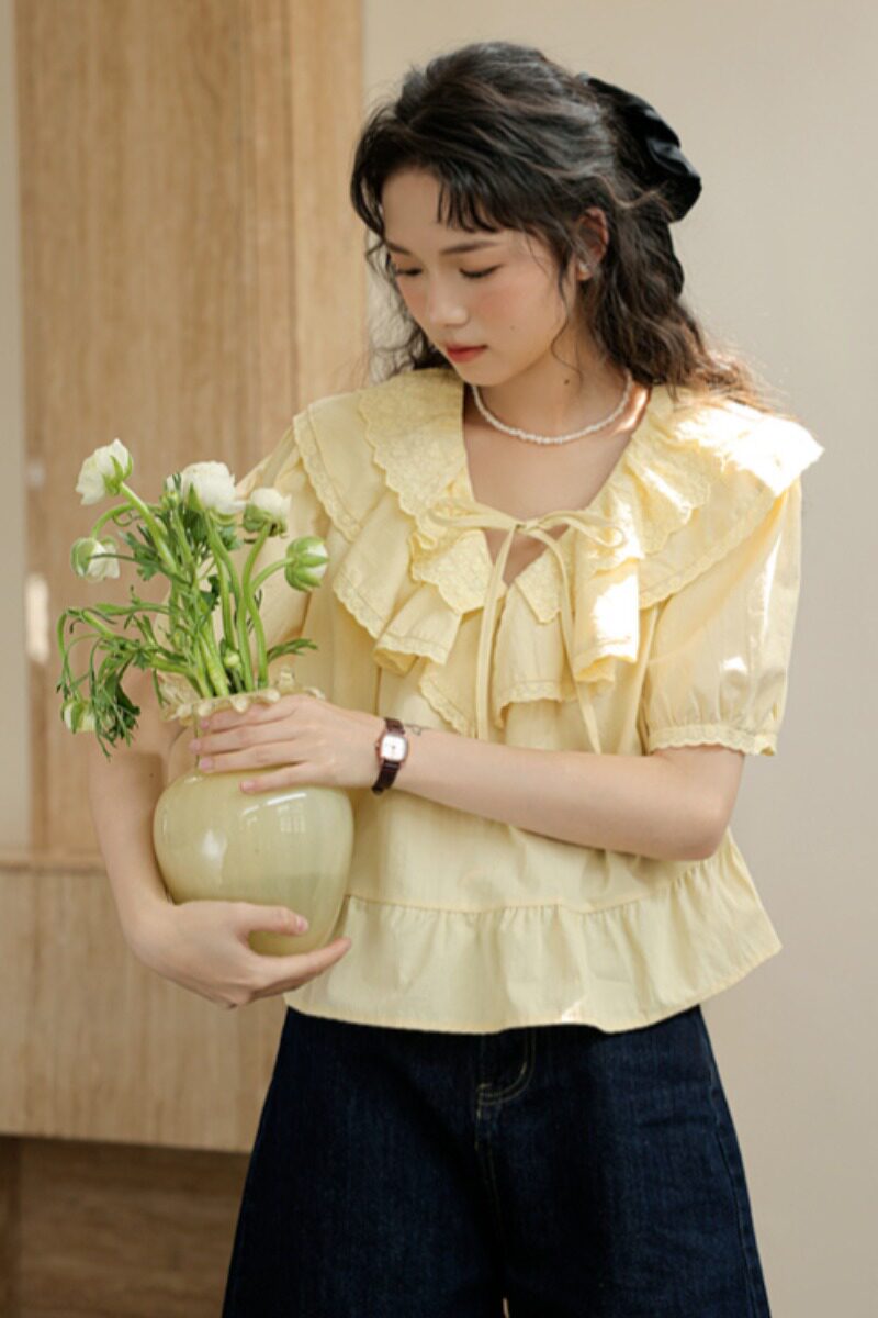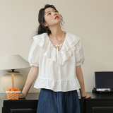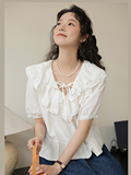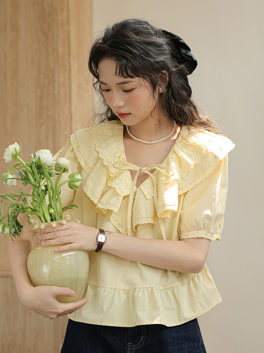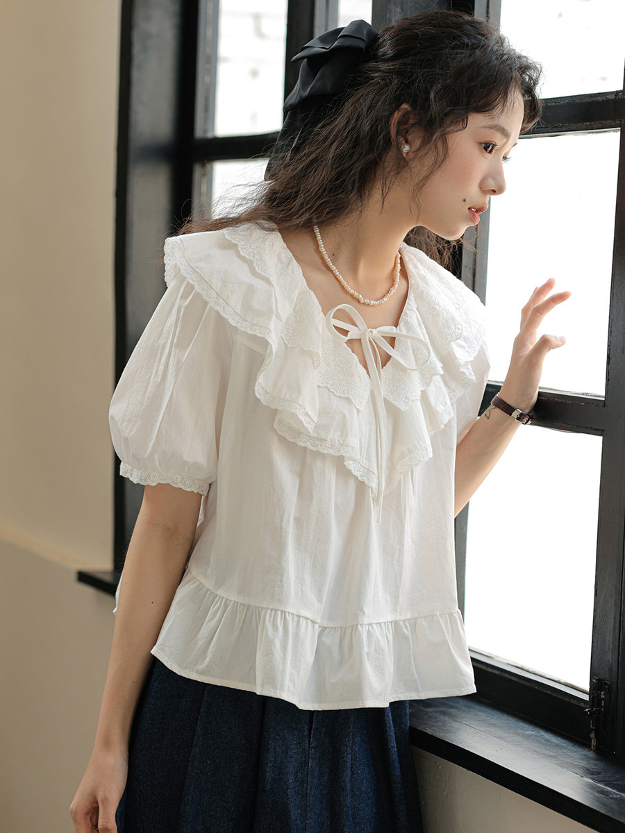 Милая кружевная дизайнерская летняя рубашка, 2023, рукава фонарики, тренд сезона