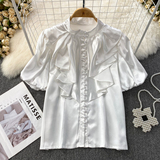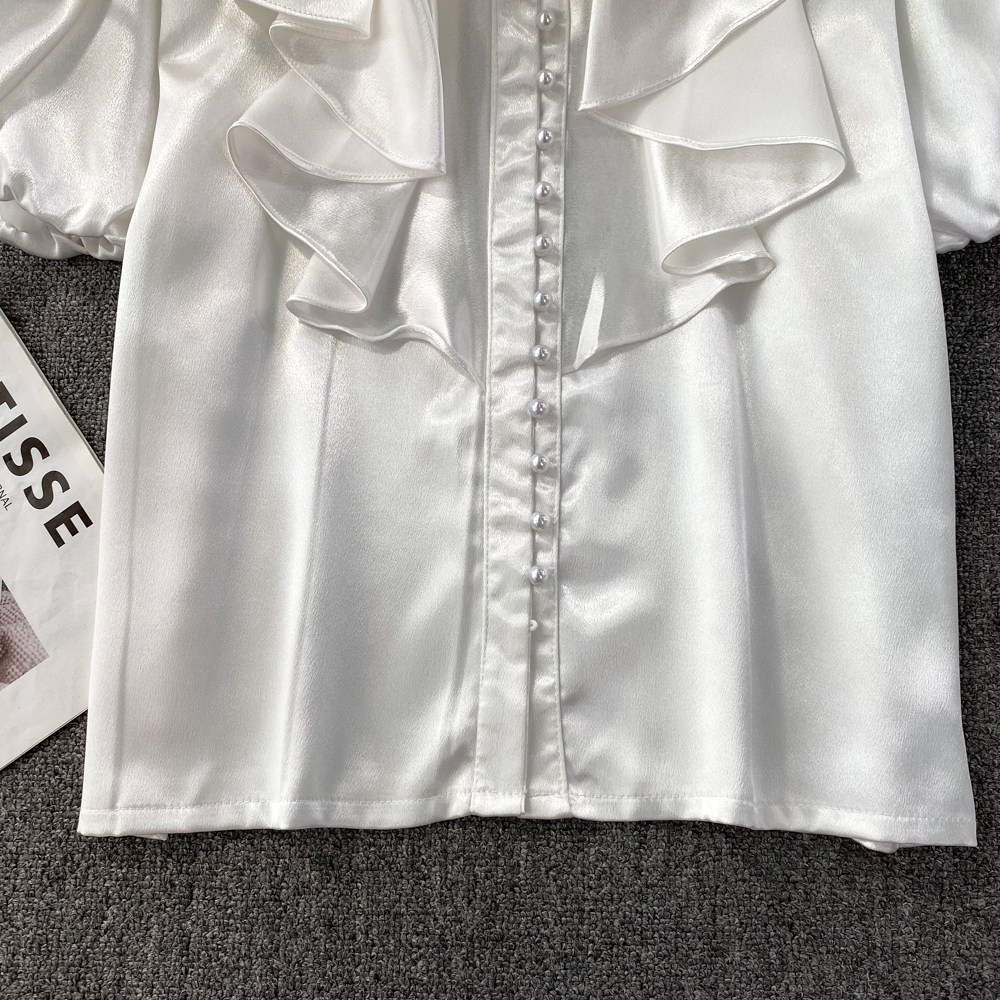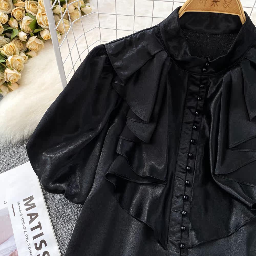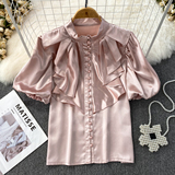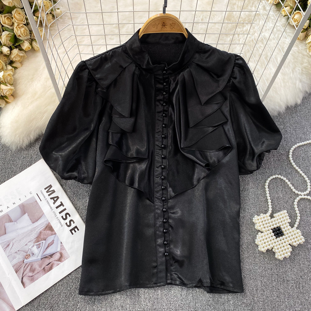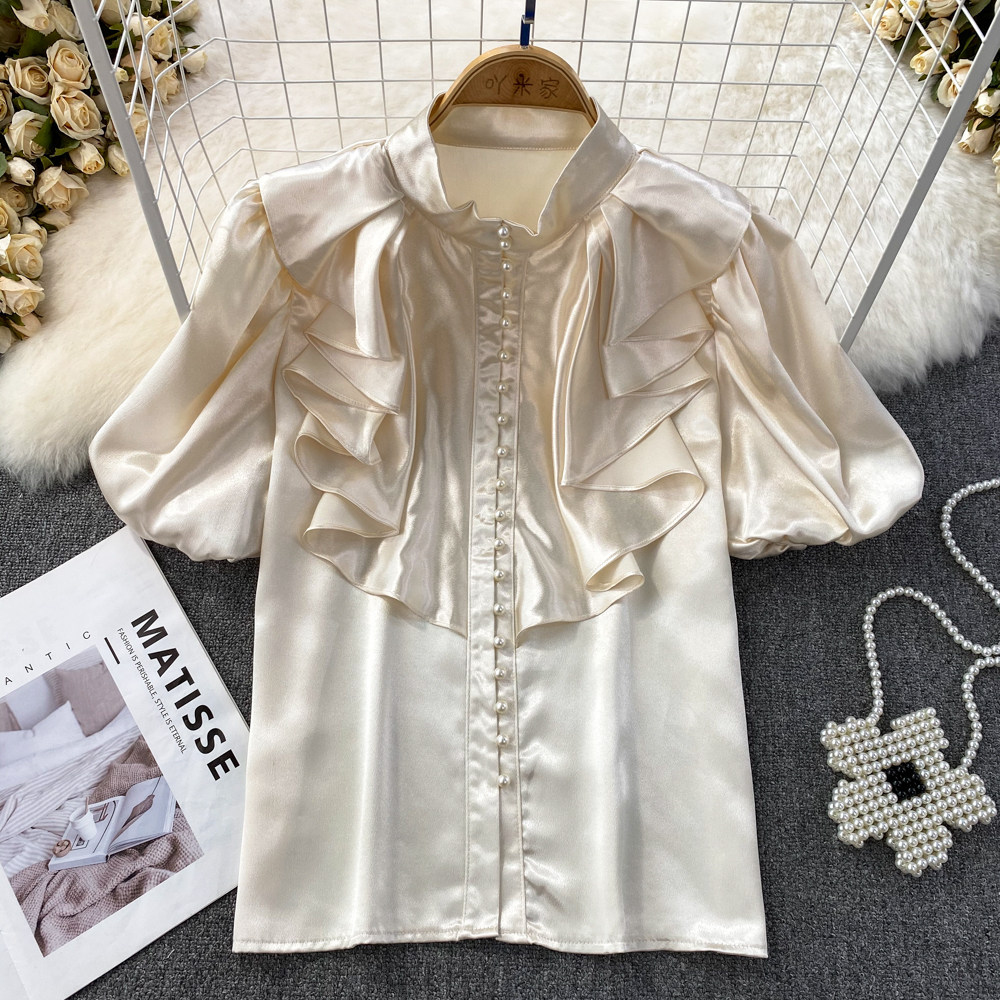 Ретро рубашка, французский стиль, короткий рукав, свободный крой