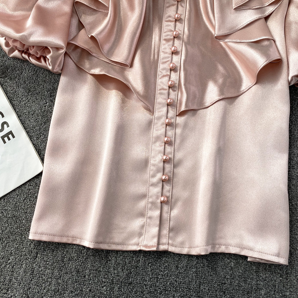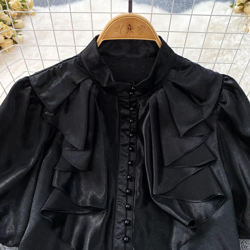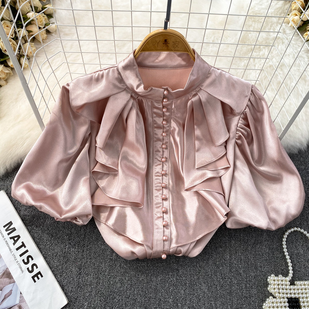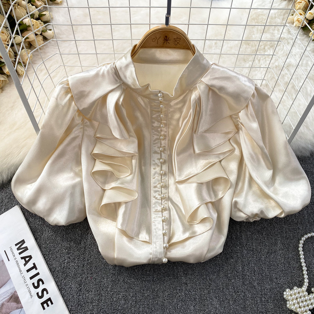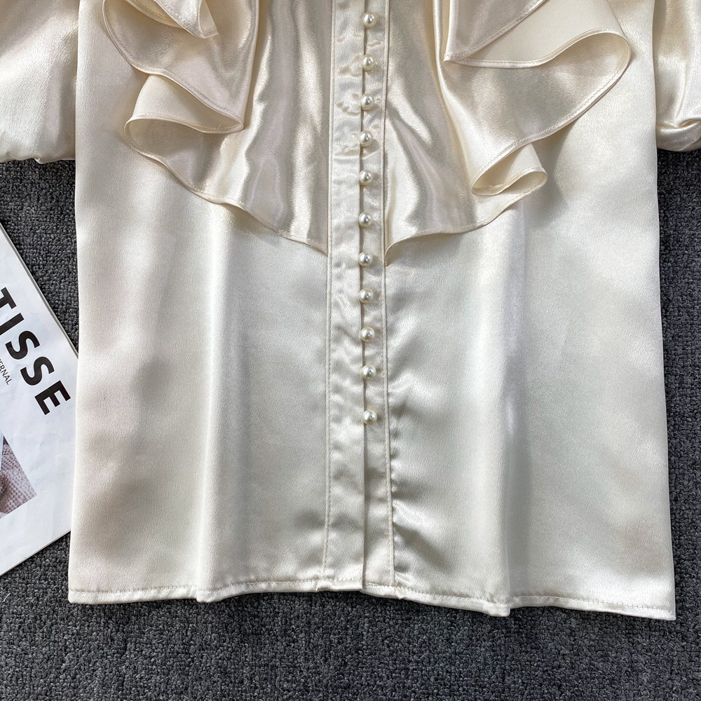 Ретро рубашка, французский стиль, короткий рукав, свободный крой