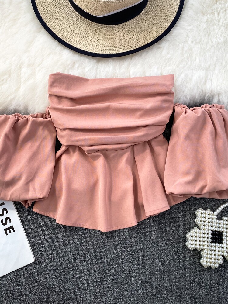 Топ без лямок, летняя кукла, рубашка, дизайнерская футболка, открытые плечи, с открытой спиной, тренд сезона, рукава фонарики