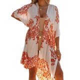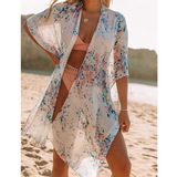 Mid Lngth Slit Print Beach Sun Conster Style Style