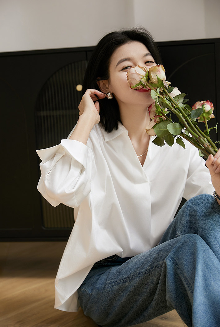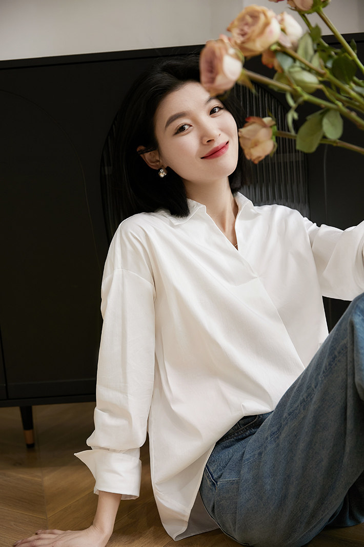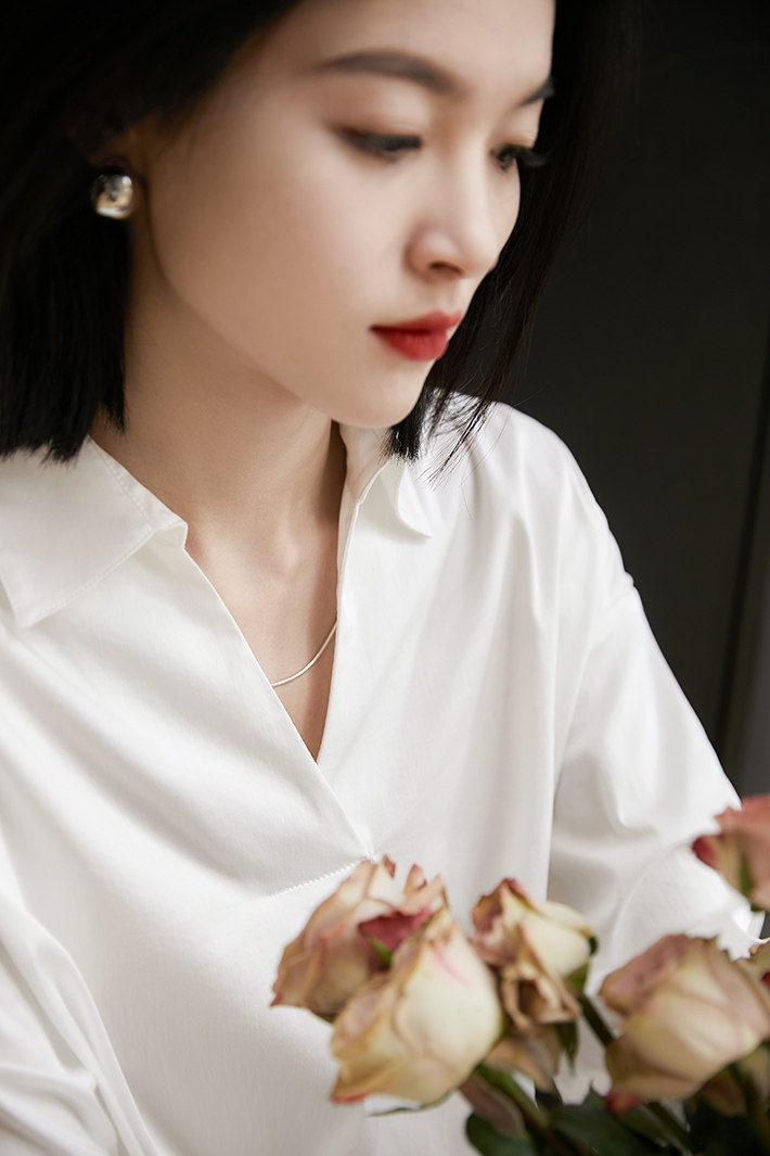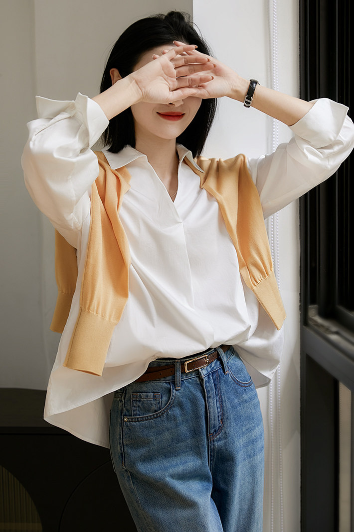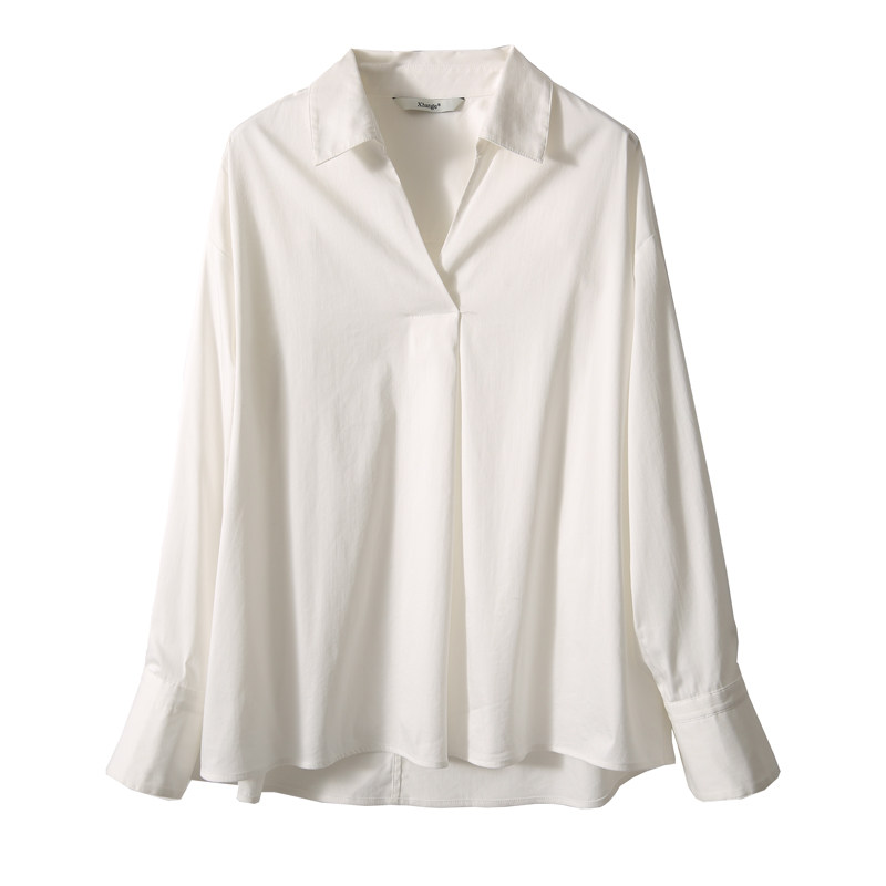 [CIC484611AG] Белые рубашки не слишком много!Половина open v -neck хлопковая рубашка