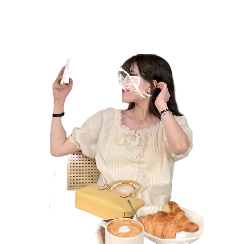 Модная летняя милая рубашка, 2023, городской стиль, на шнурках, короткий рукав