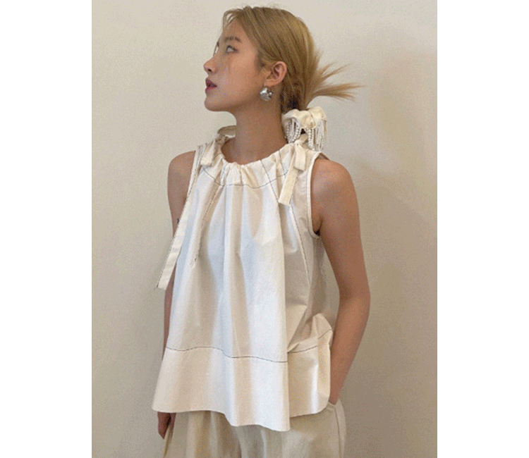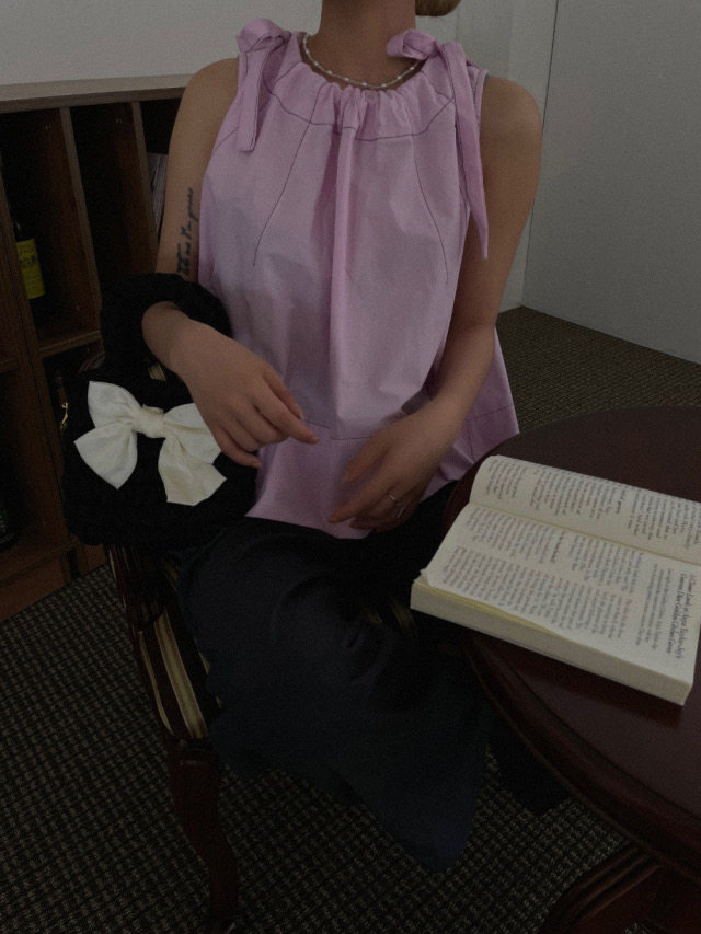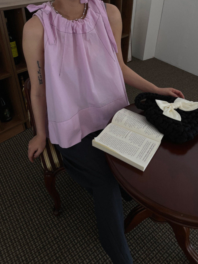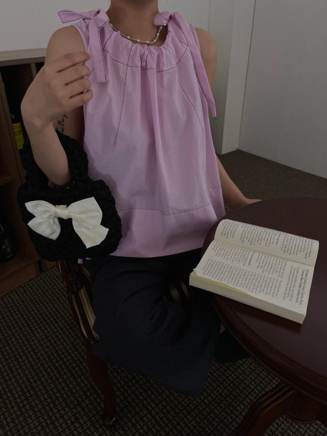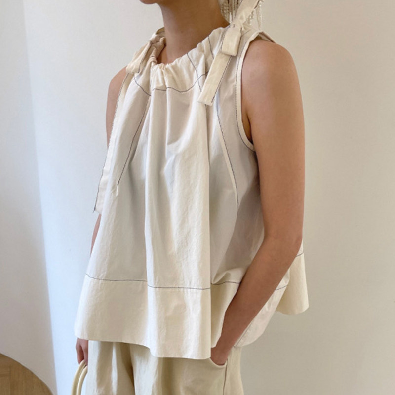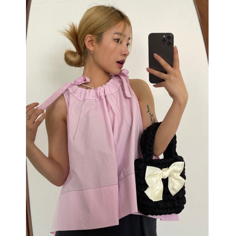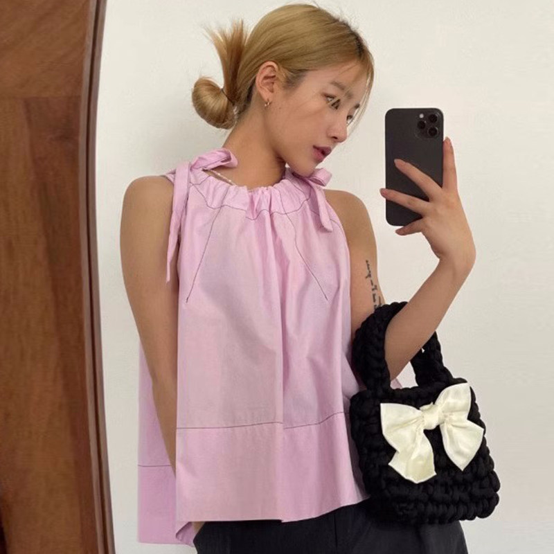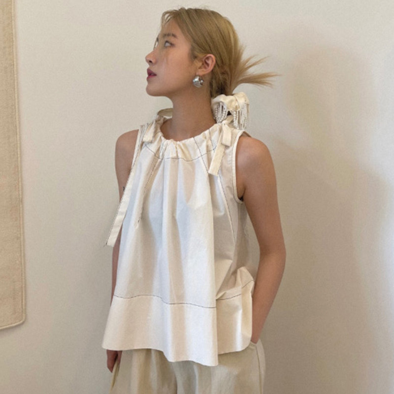Летняя ретро дизайнерская рубашка с круглым воротником с бантиком без рукавов, в корейском стиле, на шнурках, свободный крой