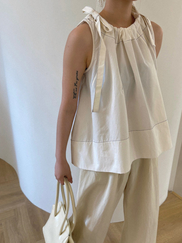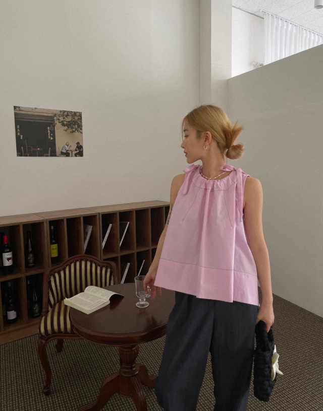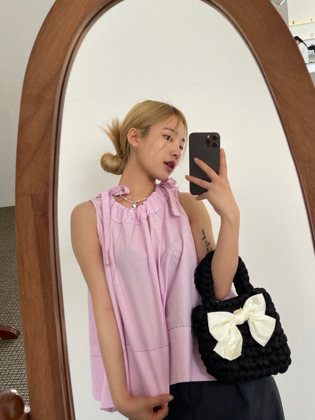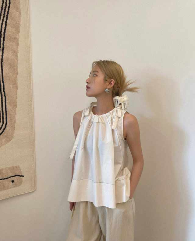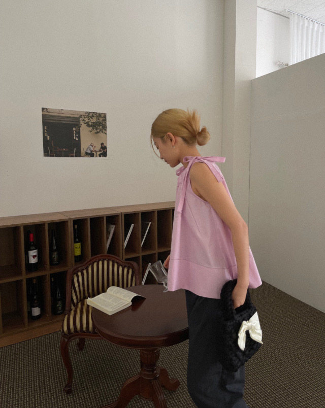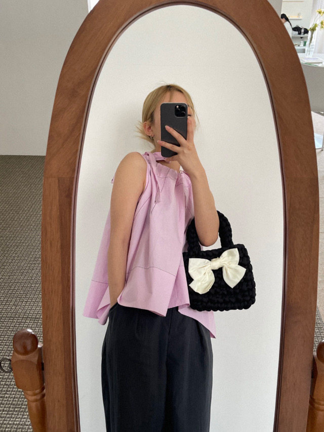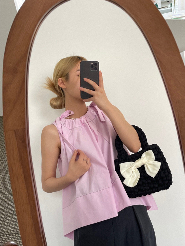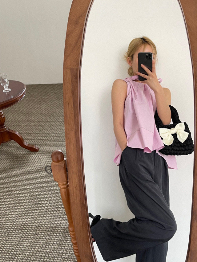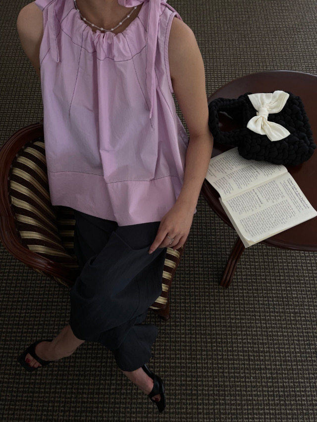 Летняя ретро дизайнерская рубашка с круглым воротником с бантиком без рукавов, в корейском стиле, на шнурках, свободный крой