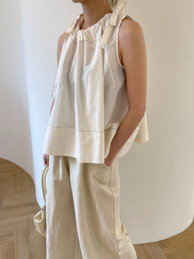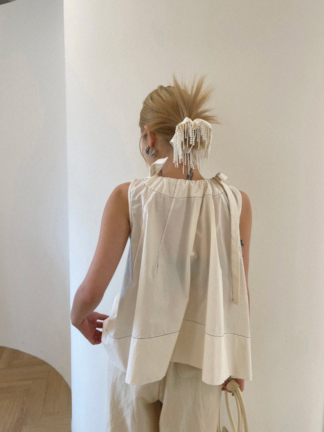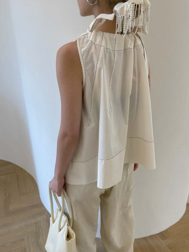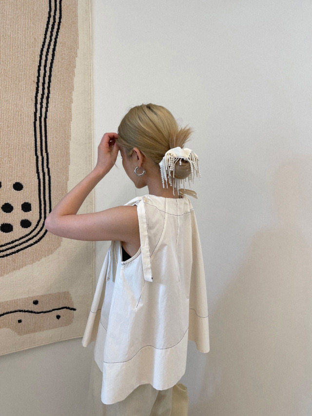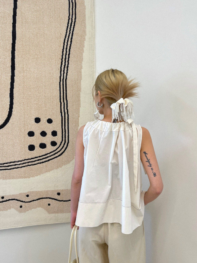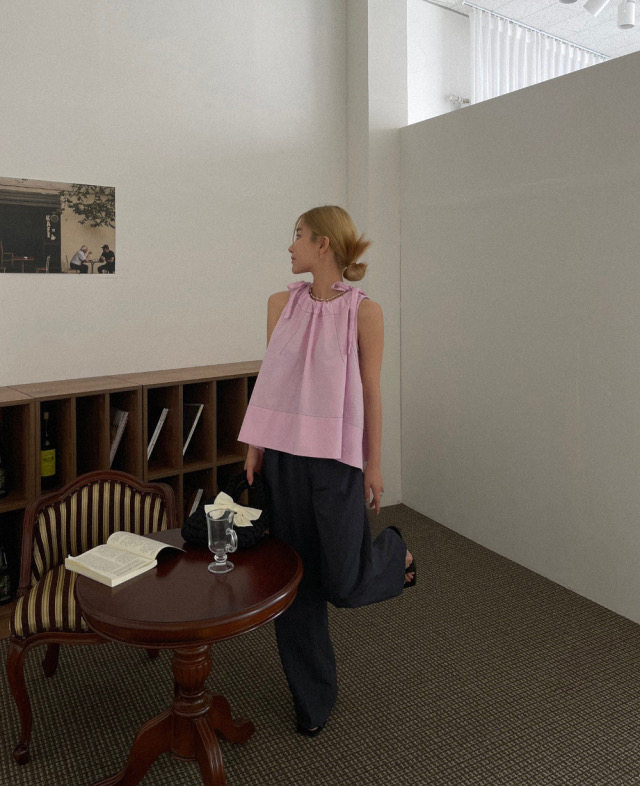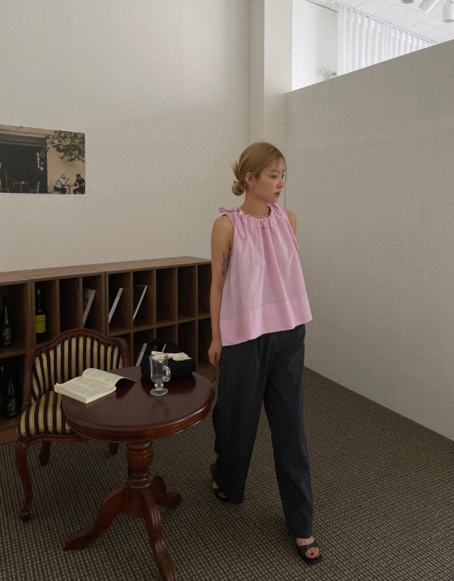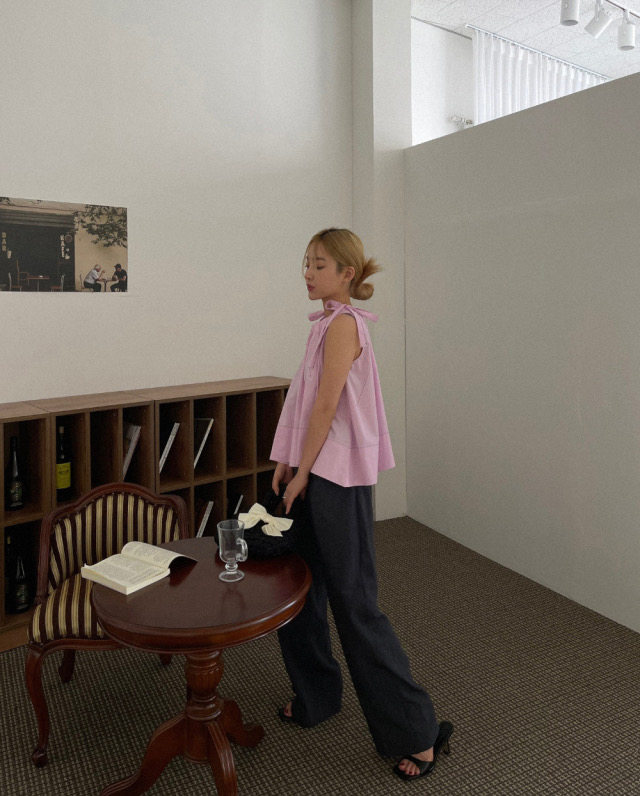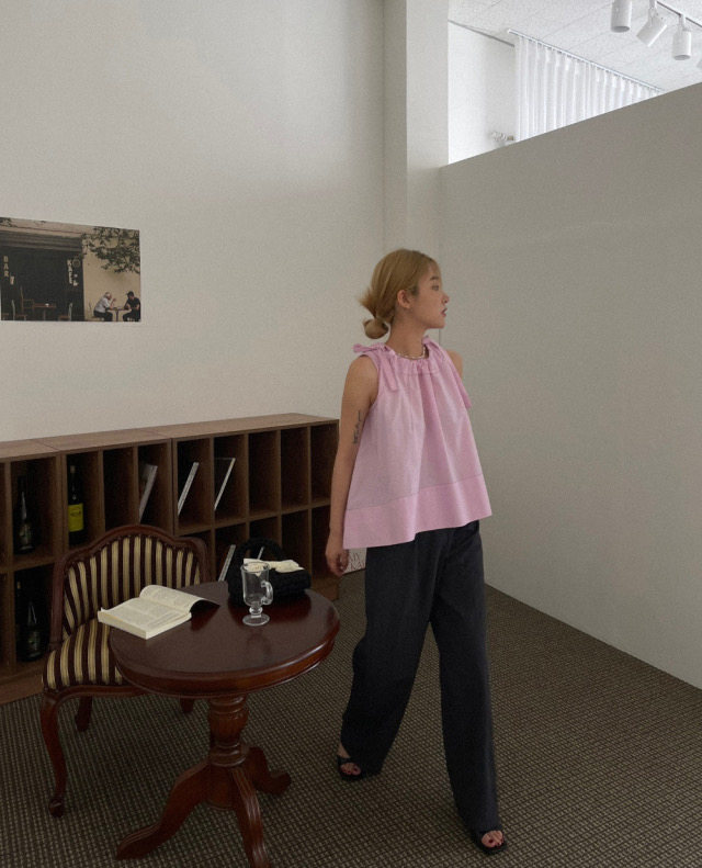 Летняя ретро дизайнерская рубашка с круглым воротником с бантиком без рукавов, в корейском стиле, на шнурках, свободный крой