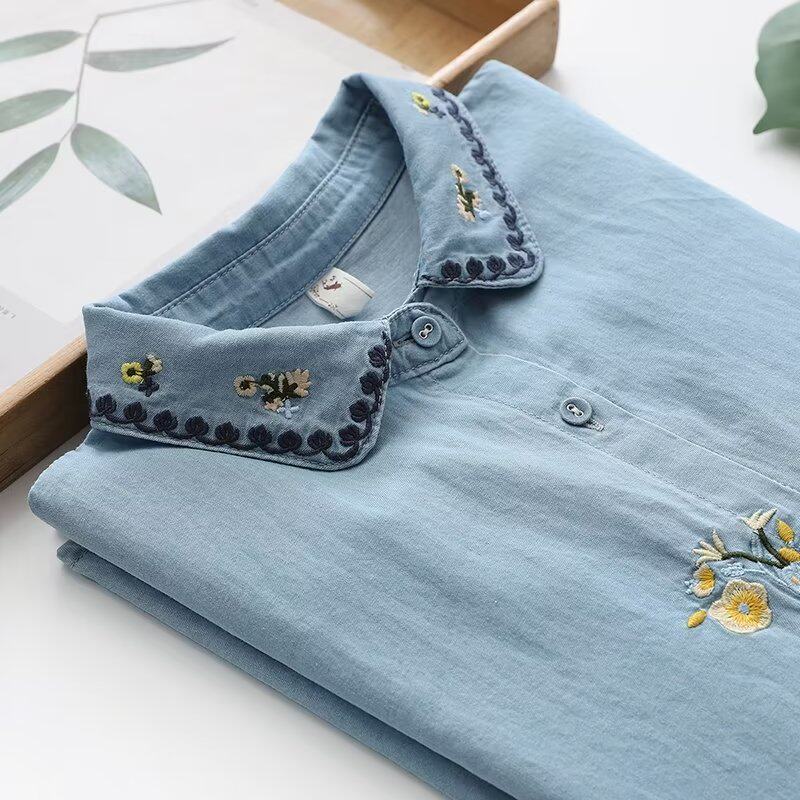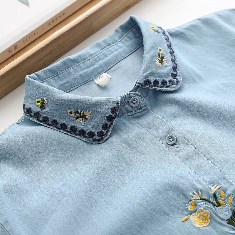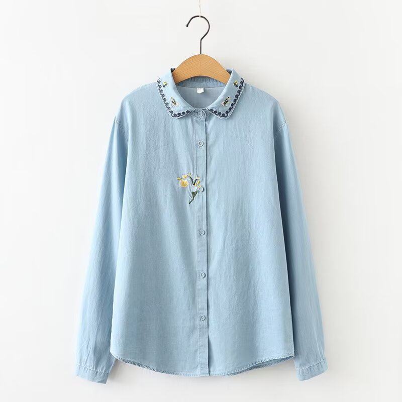 Японская свежая дизайнерская рубашка, в цветочек, с вышивкой, тренд сезона, оверсайз