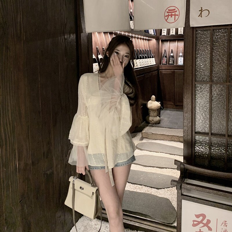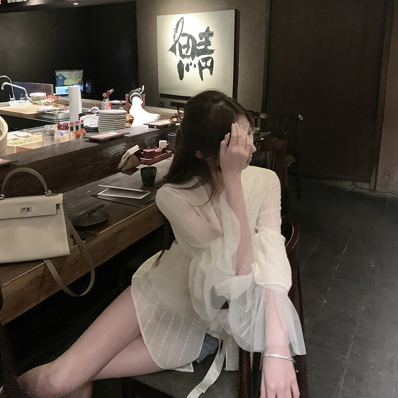 Шифоновая летняя рубашка, комплект, защита от солнца, эффект подтяжки