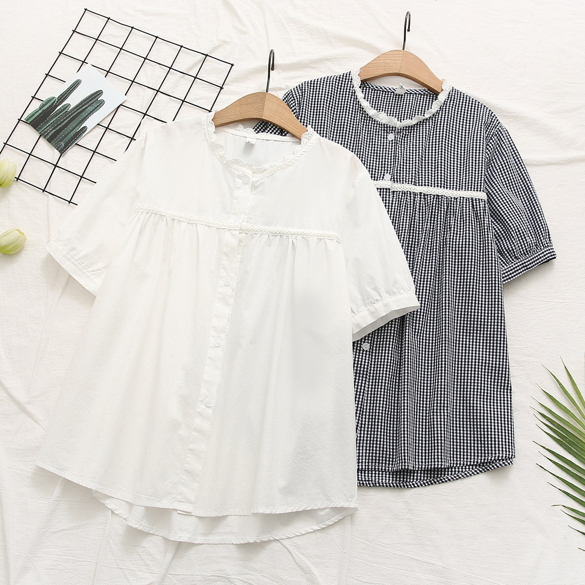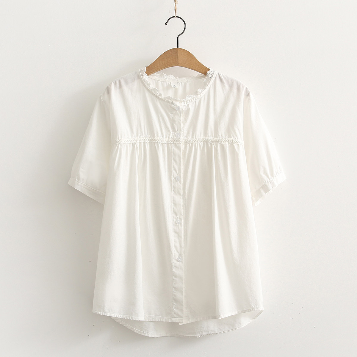 Летняя одежда, свежая рубашка с круглым воротником, короткий рукав, в корейском стиле, оверсайз