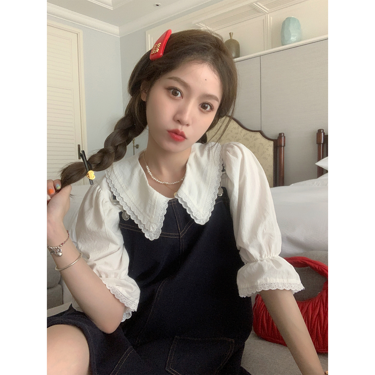 FF Blue освежающий молоко крем крема, корейская сладкая девочка, полная -матч в начале лета кружев