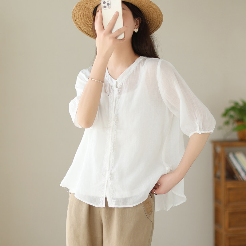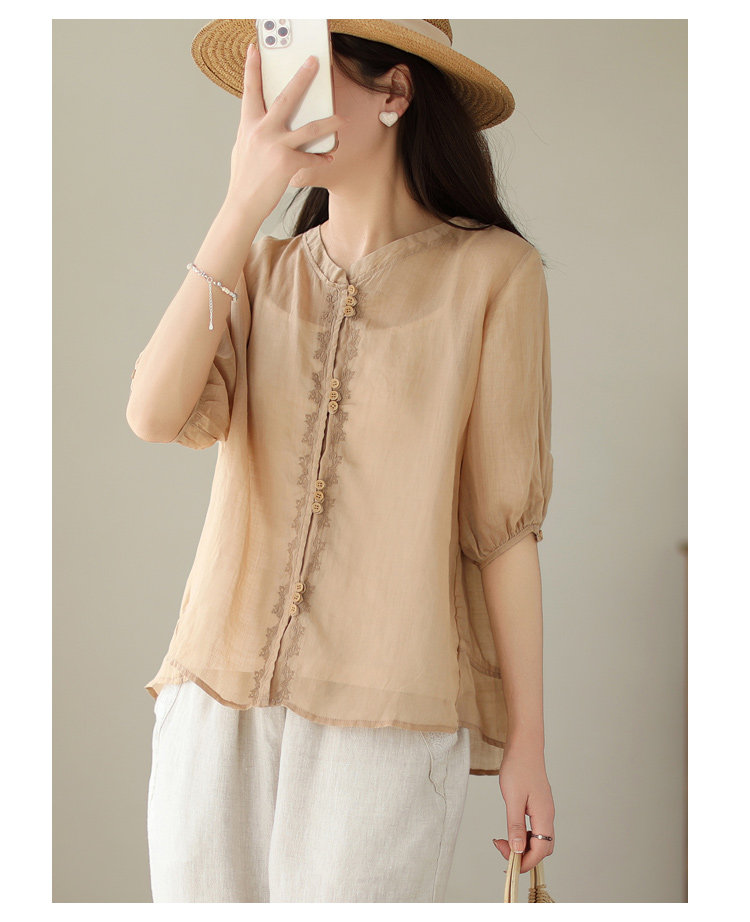 (Трансграничная торговля), японская рубашка с круглым воротником, с вышивкой, из хлопка и льна