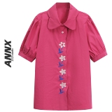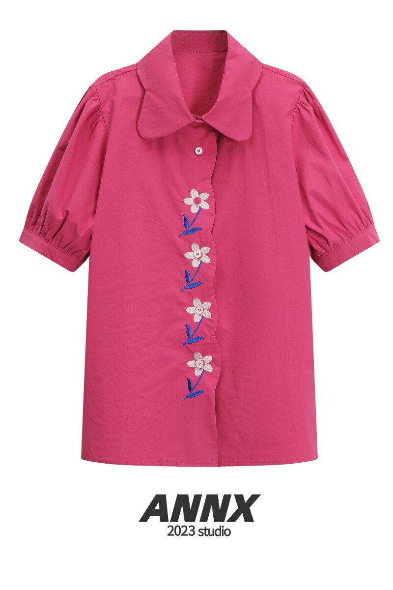 Ретро небольшая дизайнерская рубашка, 2023, яркий броский стиль, по фигуре, с вышивкой