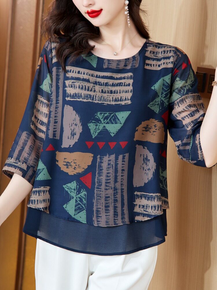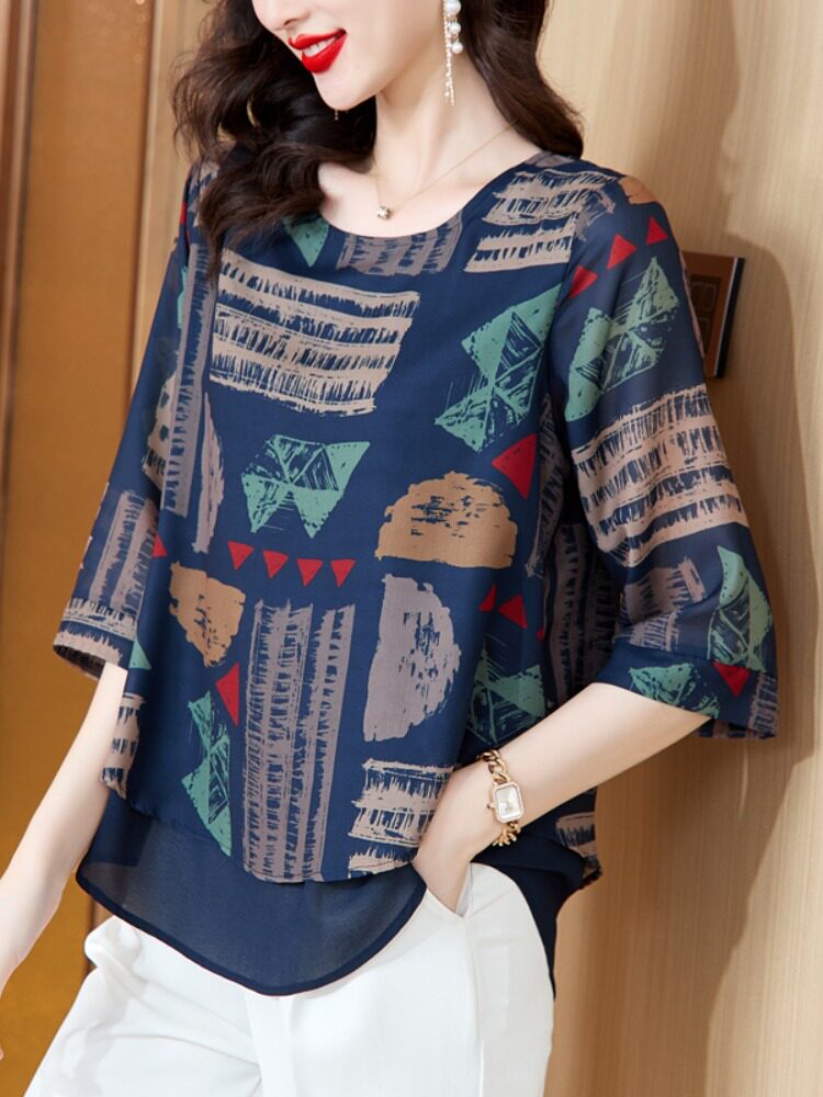 Женская одежда больших размеров 2023, летняя новая модная шифоновая рубашка с короткими рукавами, женская свободная темпераментная, уменьшающая возраст маленькая рубашка в западном стиле
