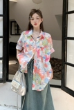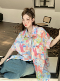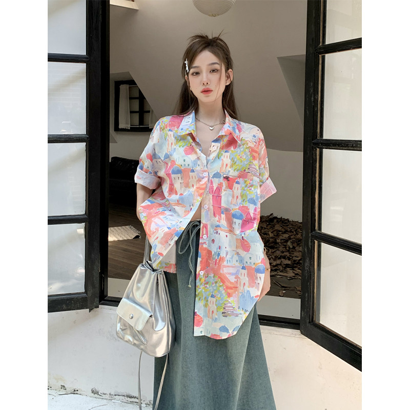 Летняя длинная дизайнерская модная рубашка, короткий рукав, оверсайз, средней длины, тренд сезона