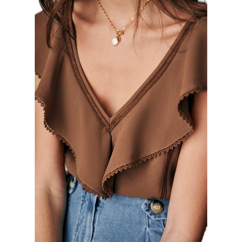 Шифоновая кружевная рубашка без рукавов, французский стиль, V-образный вырез