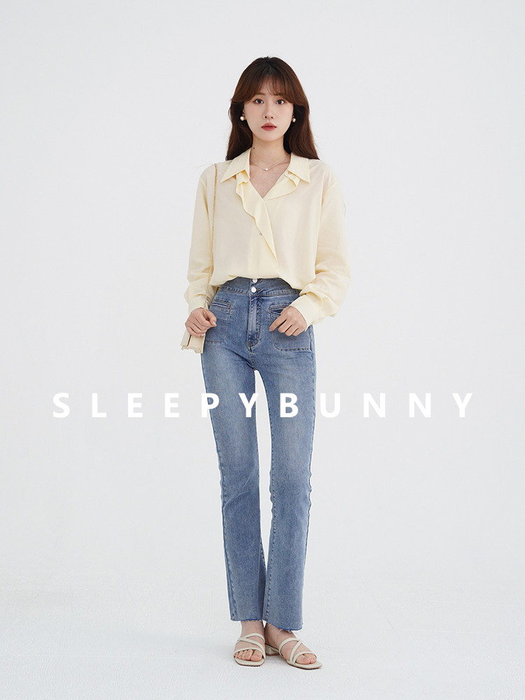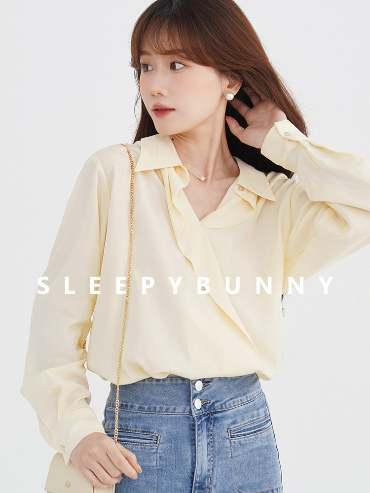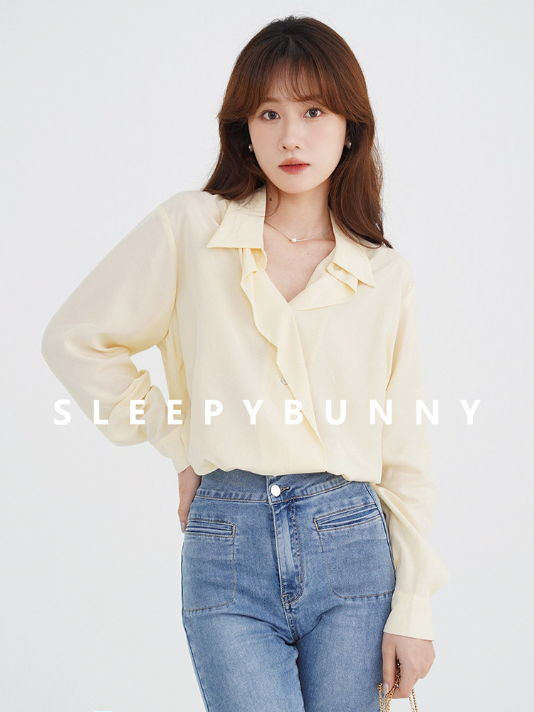 瞌睡兔 Лонгслив, желтая рубашка, оверсайз, в корейском стиле, защита от солнца