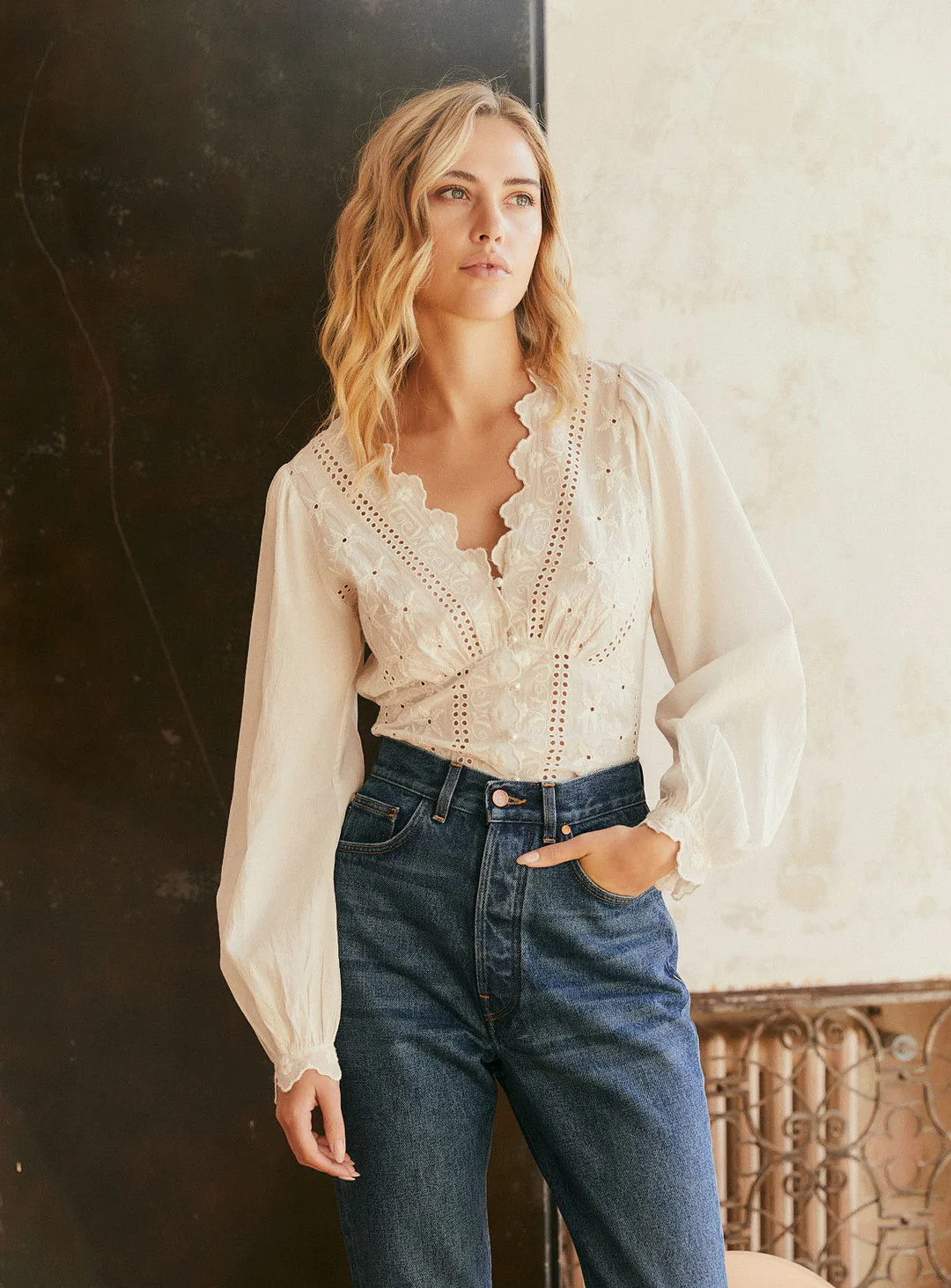 Корсет, белая хлопковая рубашка, французский стиль, с вышивкой, V-образный вырез