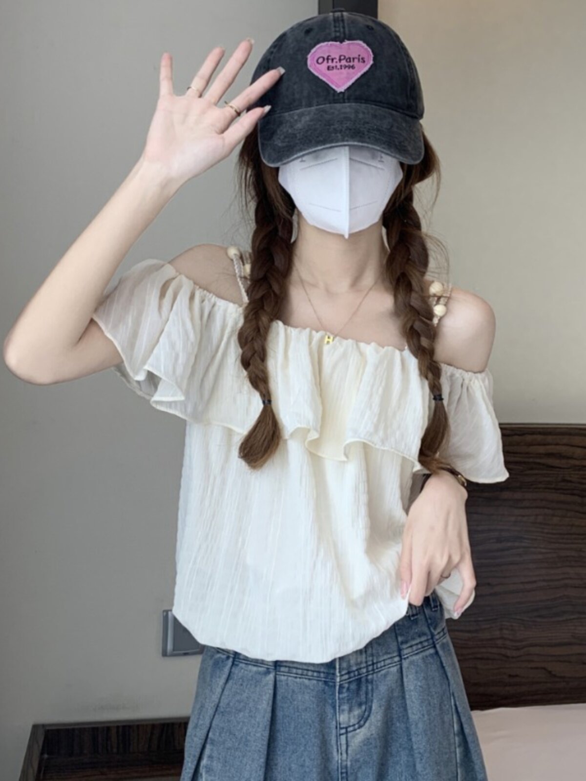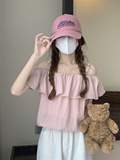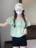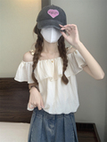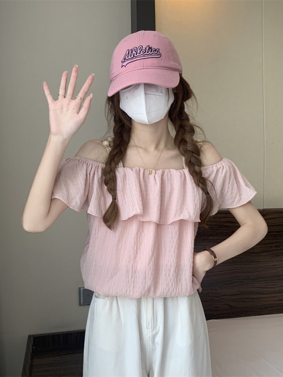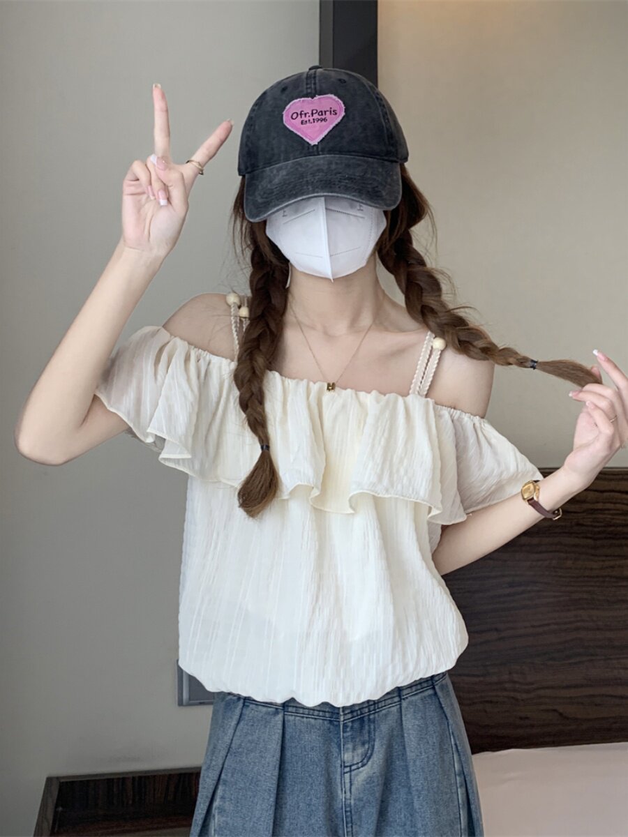 Летняя милая короткая шифоновая рубашка, французский стиль, открытые плечи