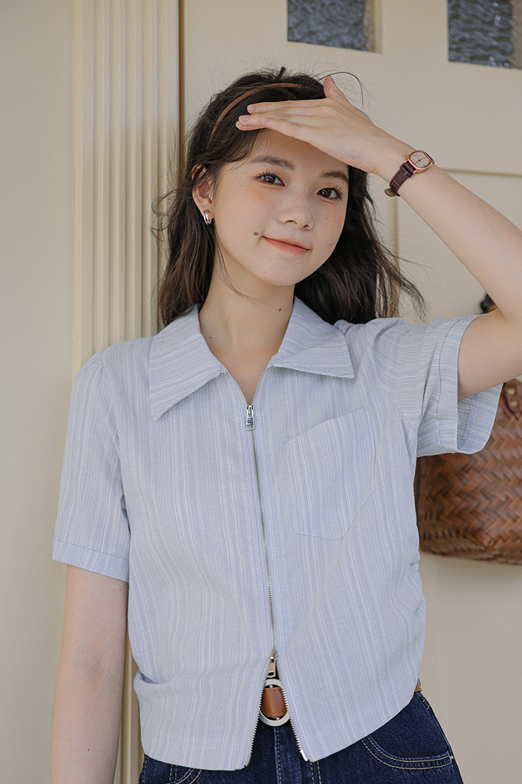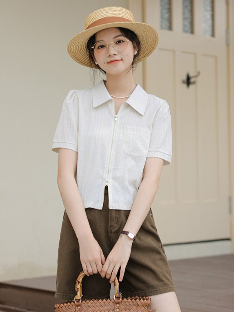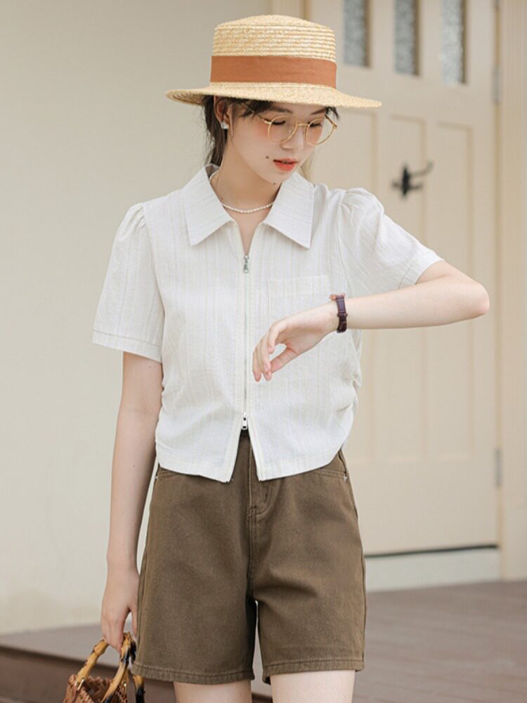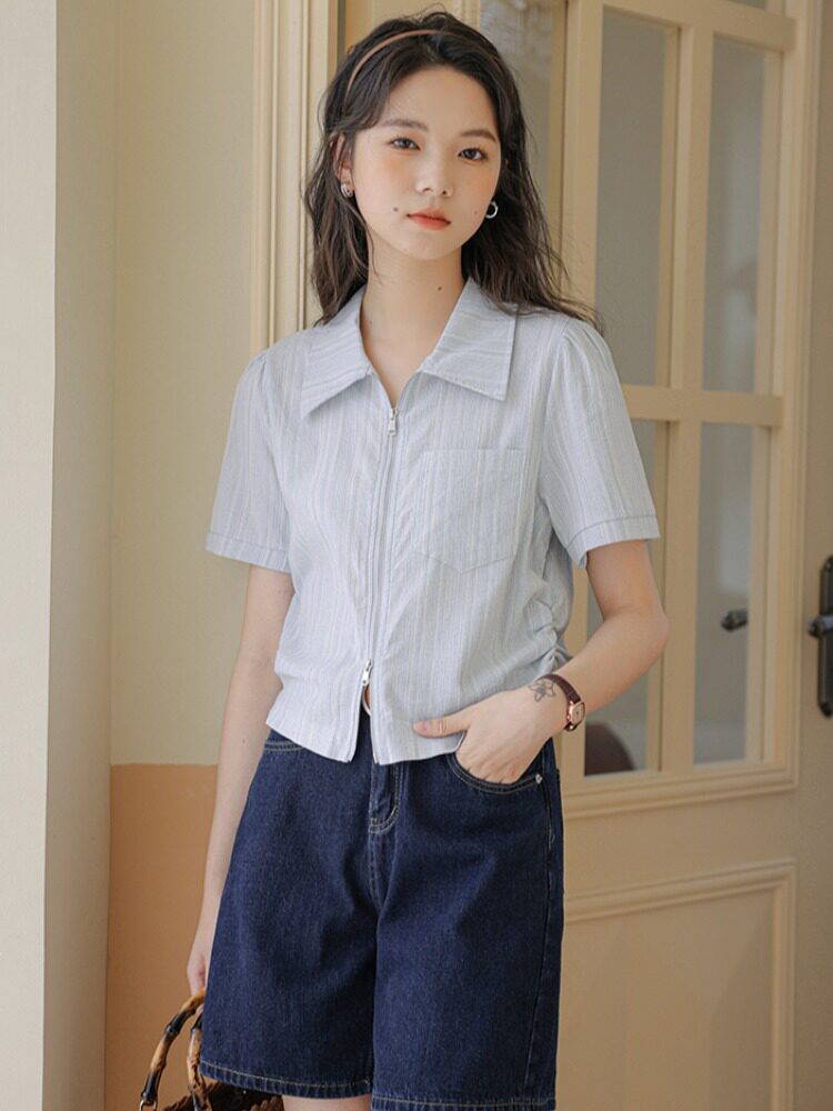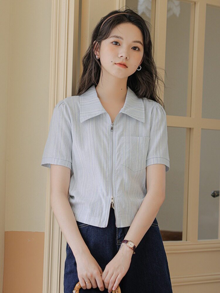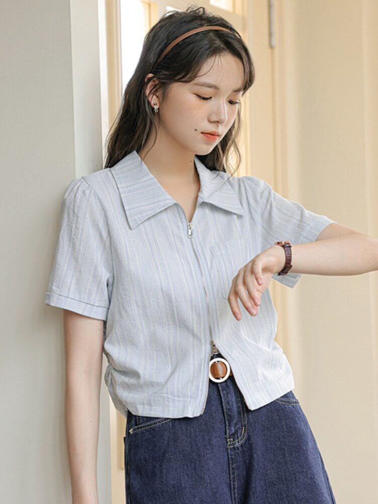 Дизайнерский летний кардиган с молнией, рубашка, в корейском стиле, тренд сезона, городской стиль, в западном стиле