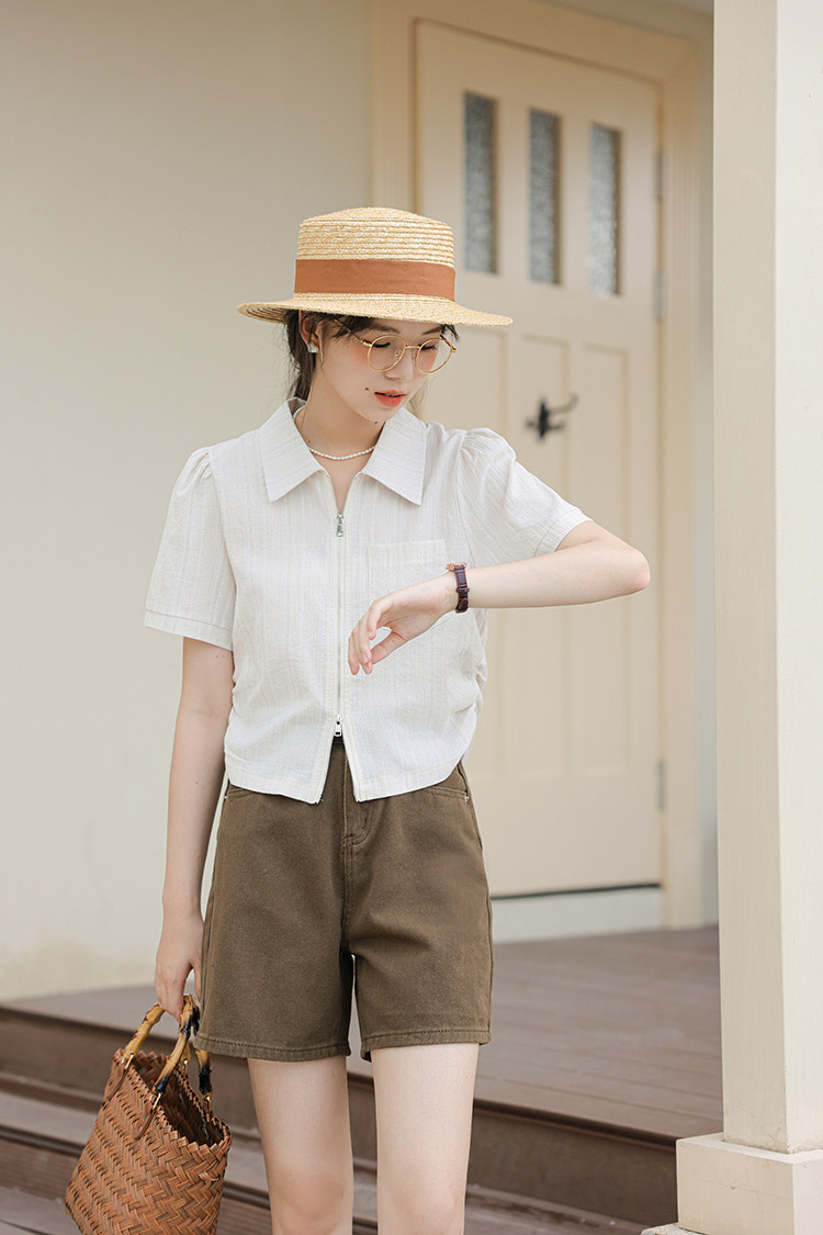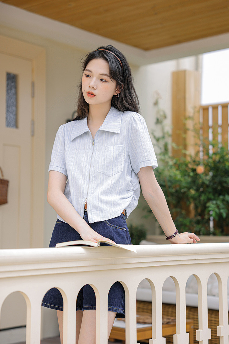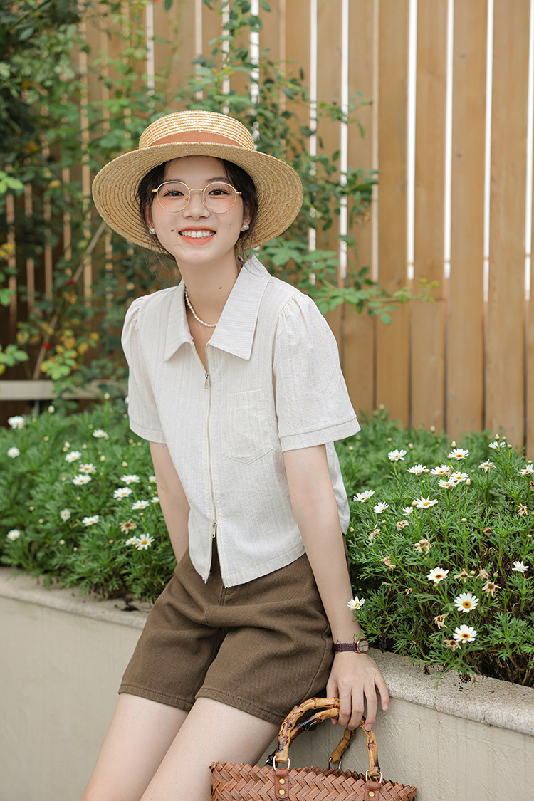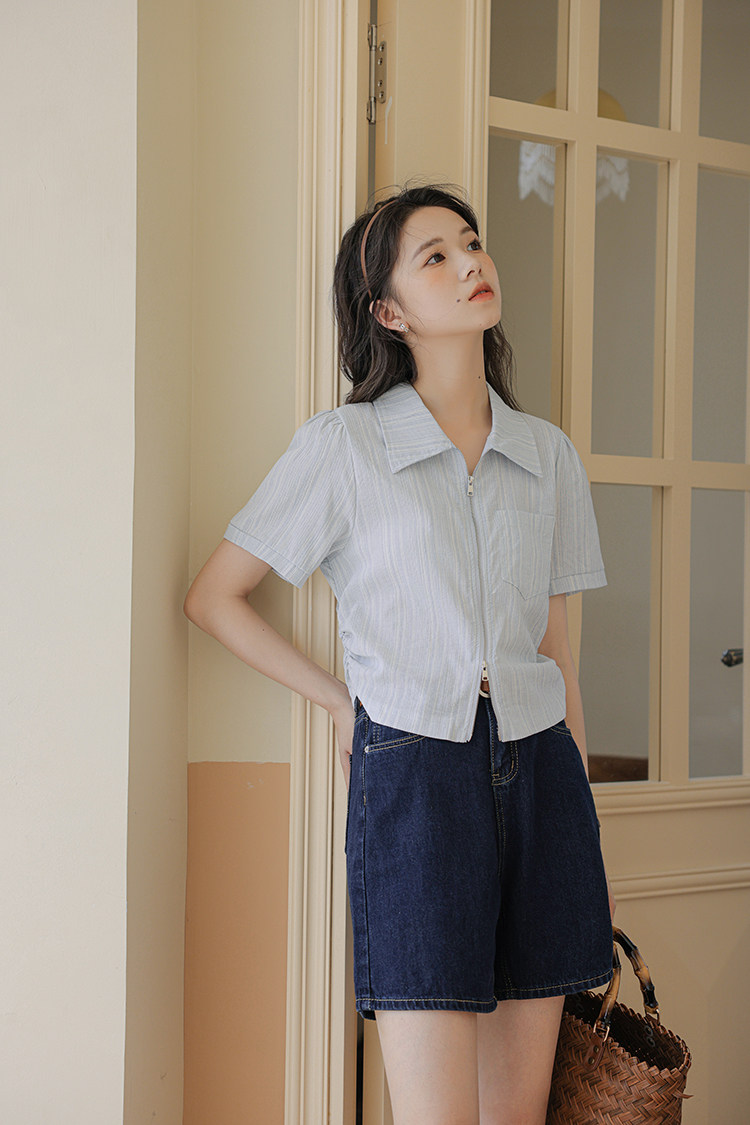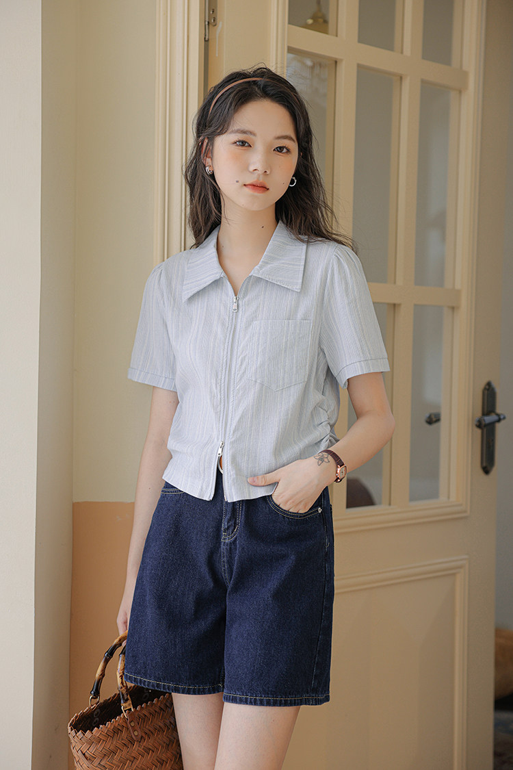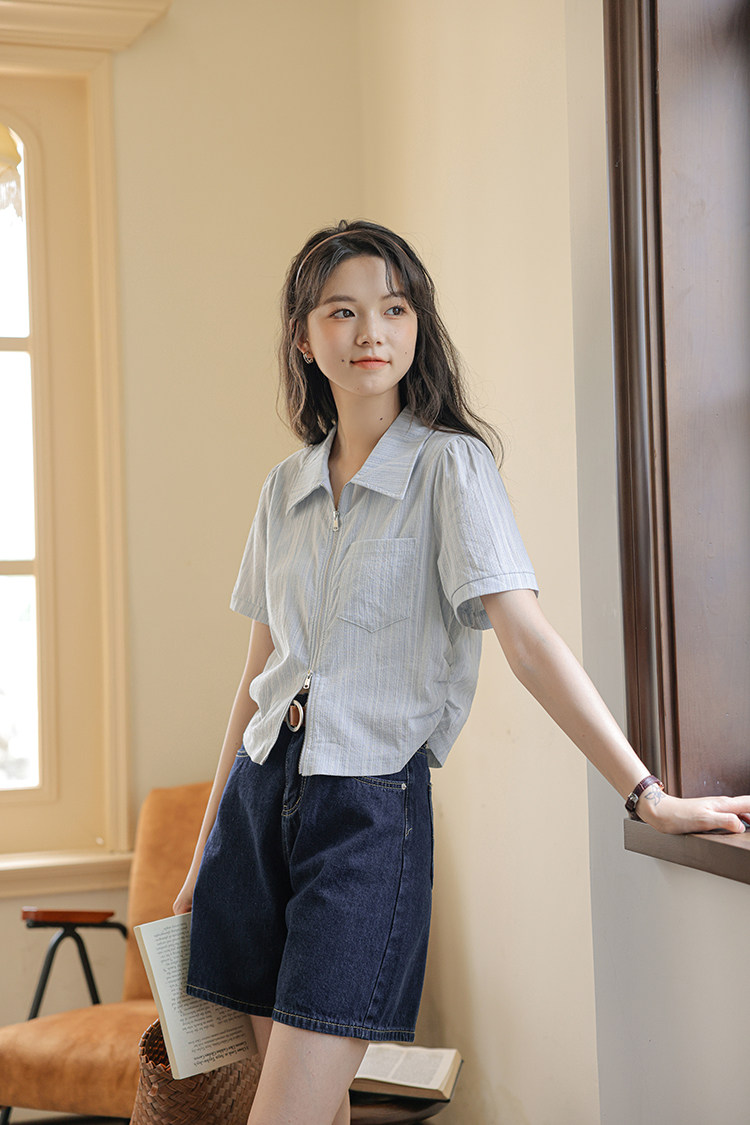 Дизайнерский летний кардиган с молнией, рубашка, в корейском стиле, тренд сезона, городской стиль, в западном стиле