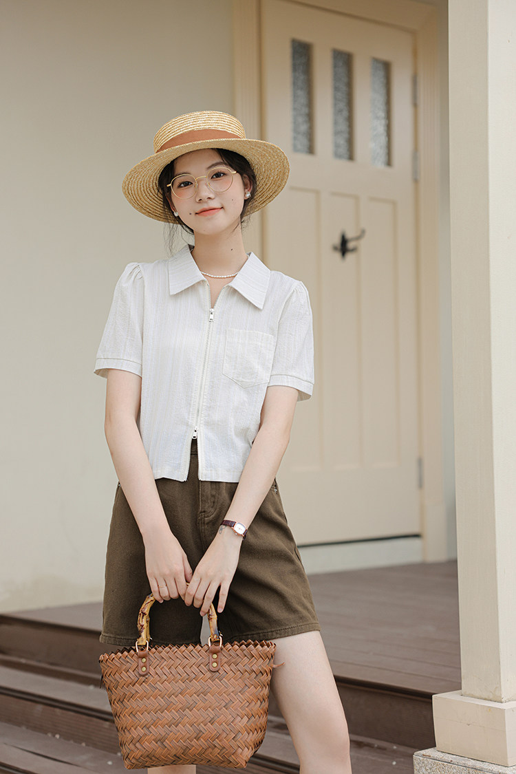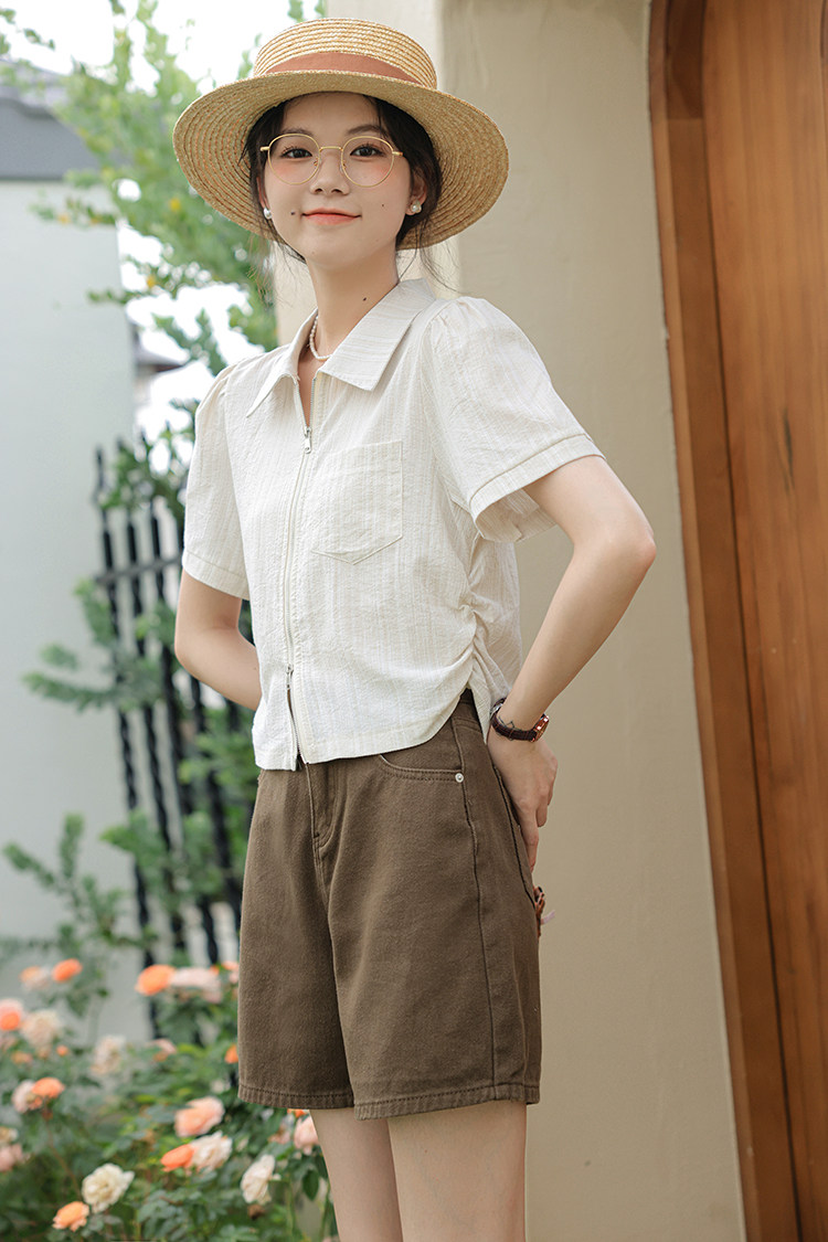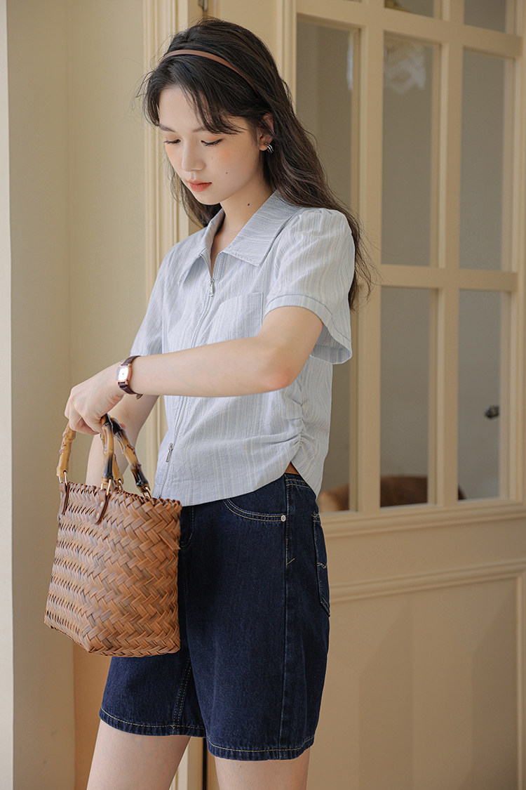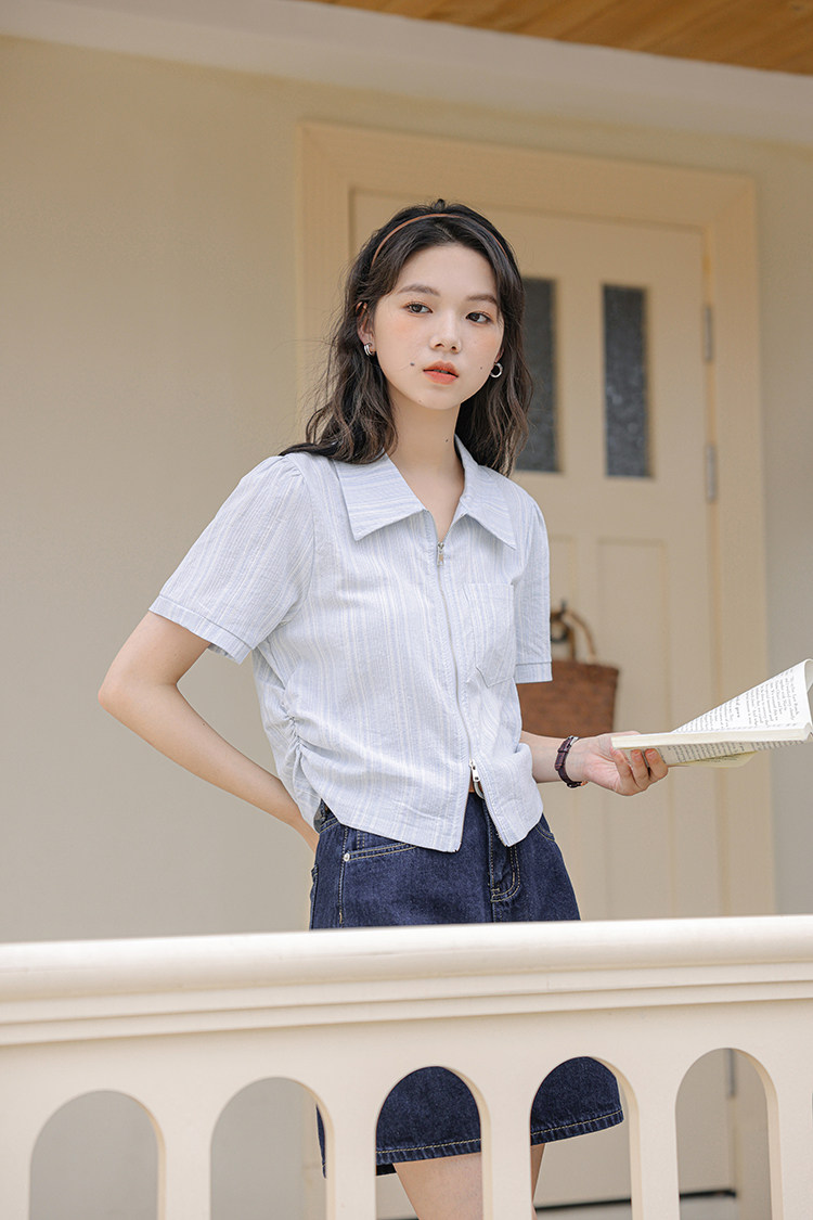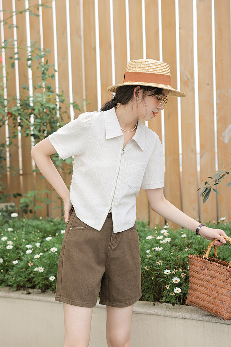 Дизайнерский летний кардиган с молнией, рубашка, в корейском стиле, тренд сезона, городской стиль, в западном стиле