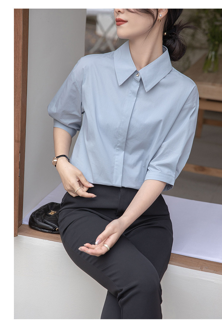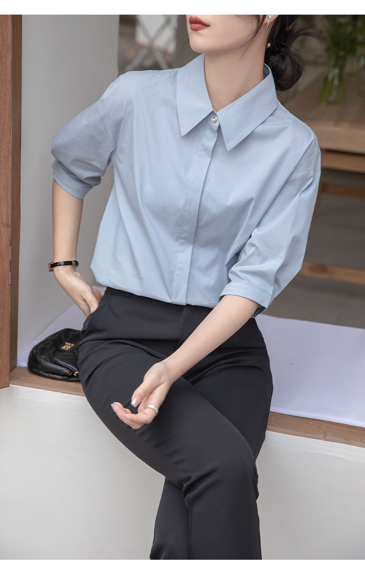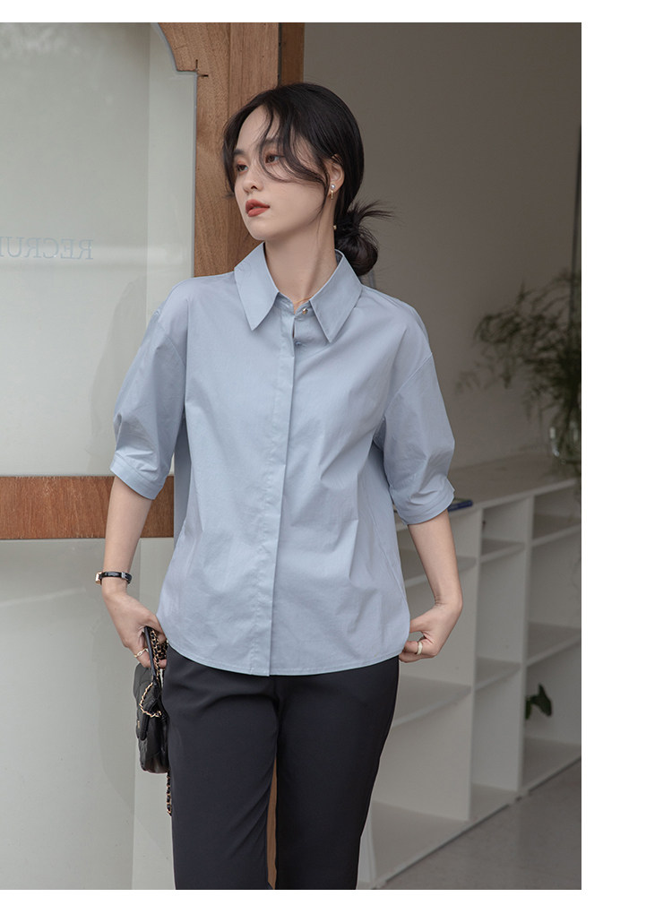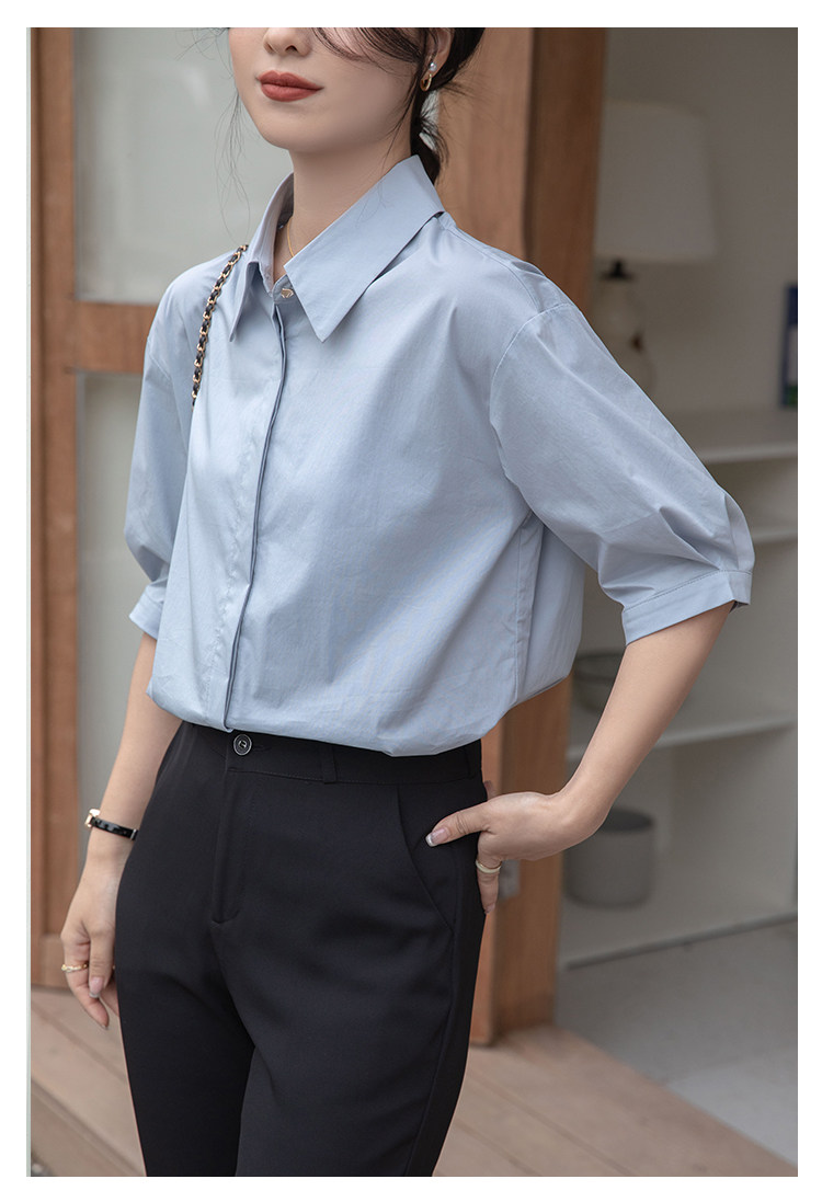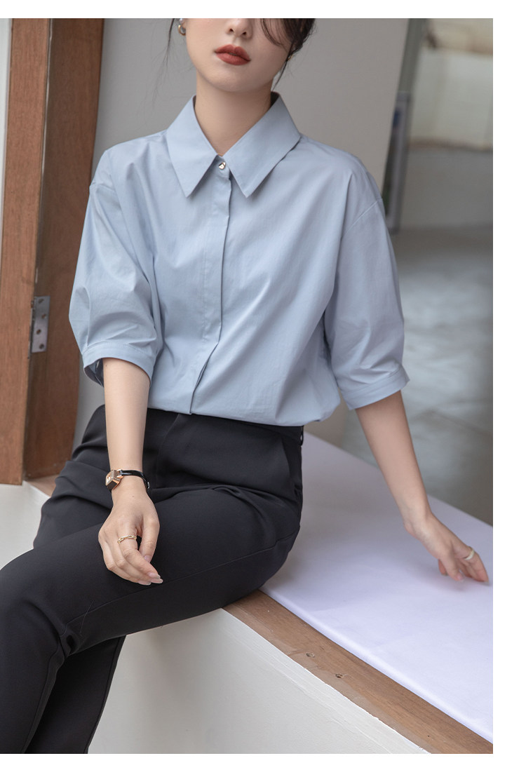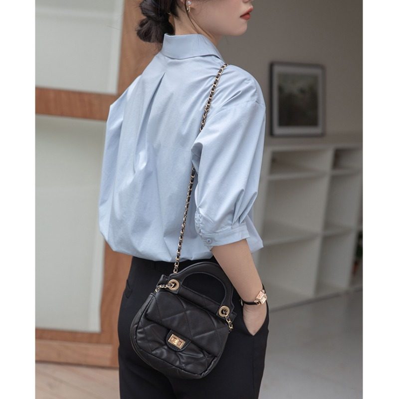 Синяя тонкая дизайнерская рубашка, тренд сезона, свободный крой