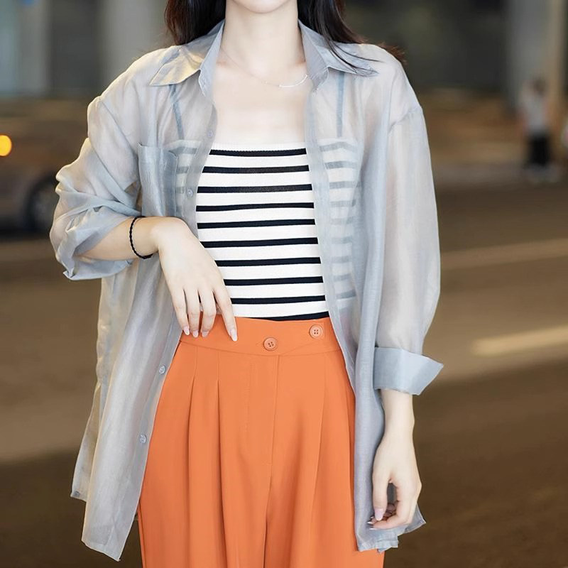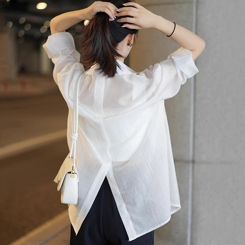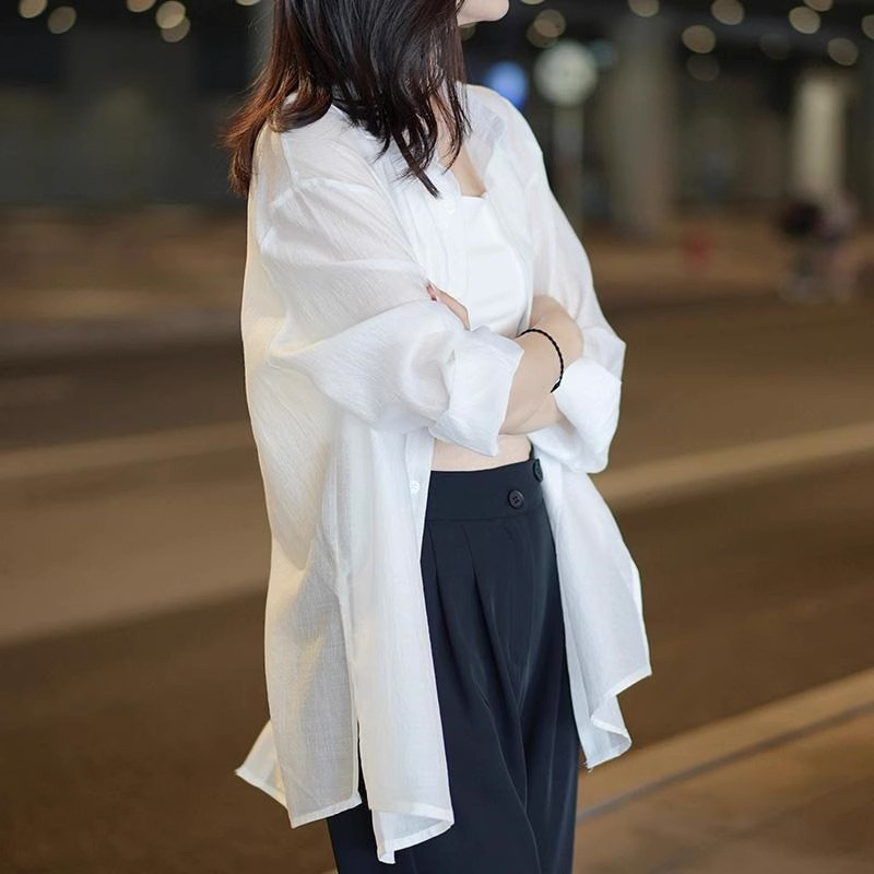 Белая летняя рубашка, тонкая куртка, одежда для защиты от солнца, кардиган