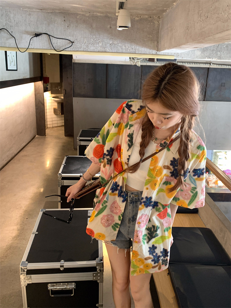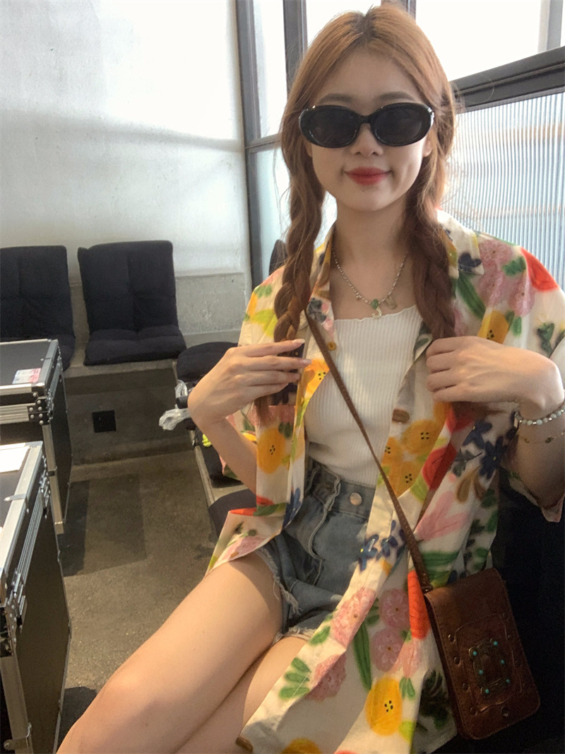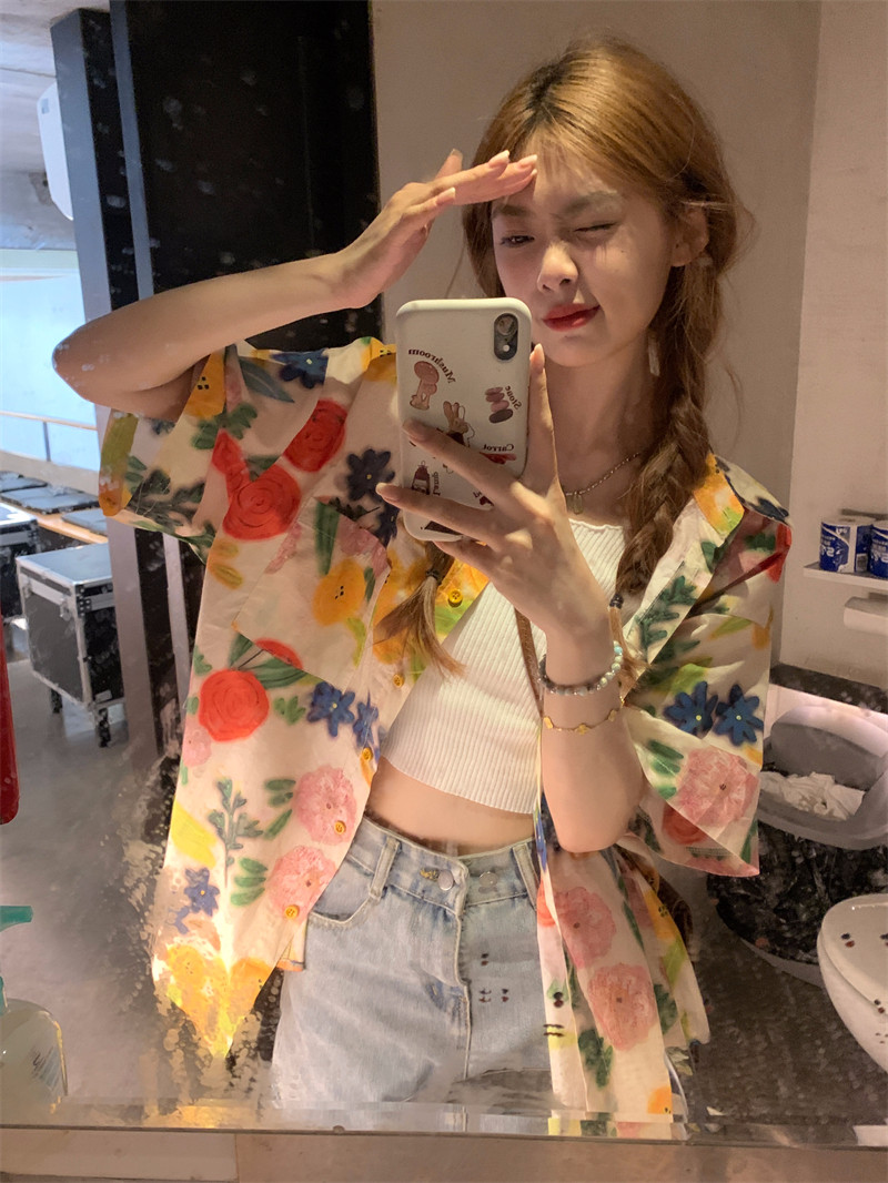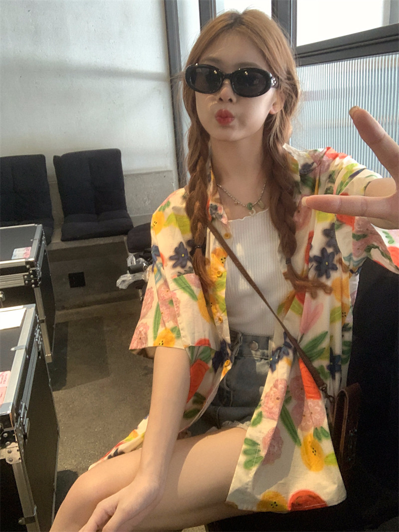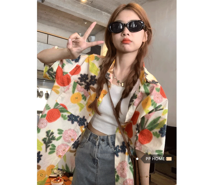 Pphome Hainan Vacation ~ сладкие праздничные цветы в Таиланде цветочные цветы короткая рубашка с разбитой рубашкой