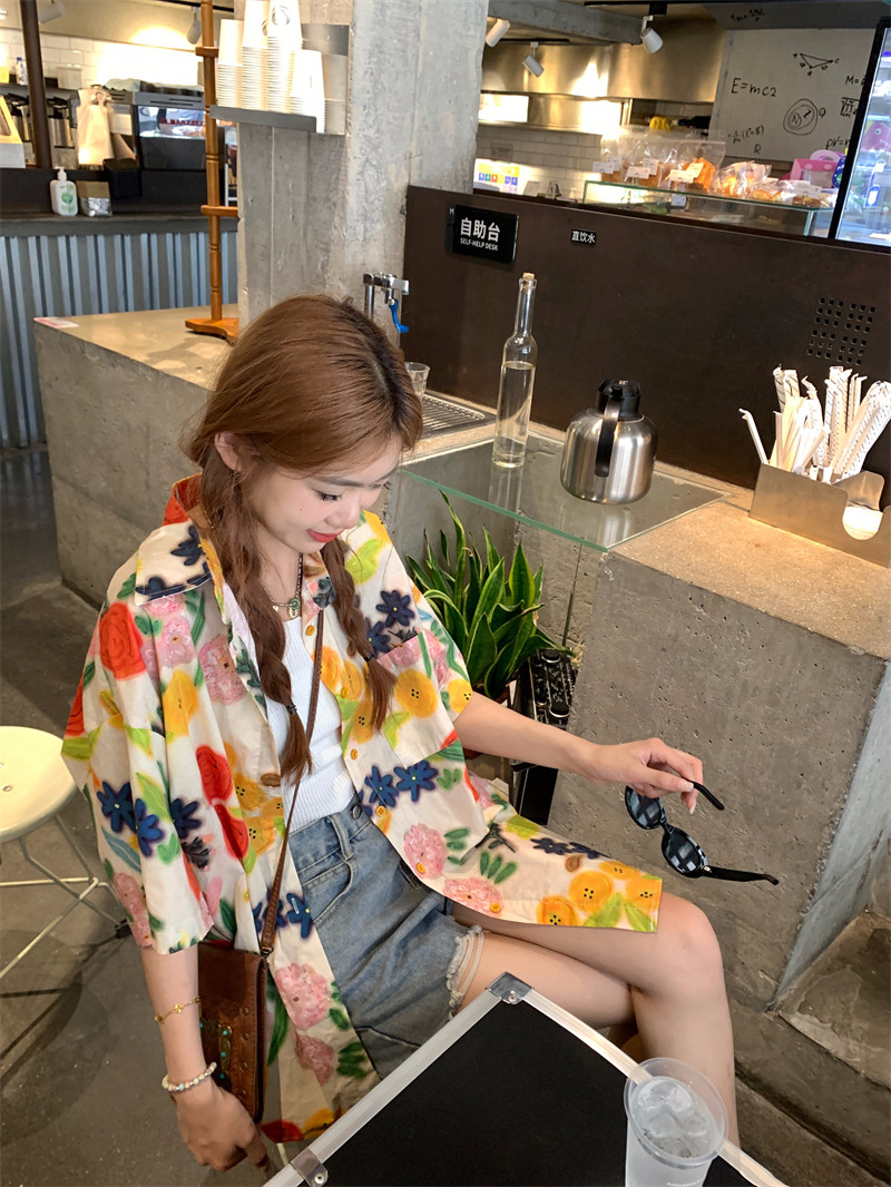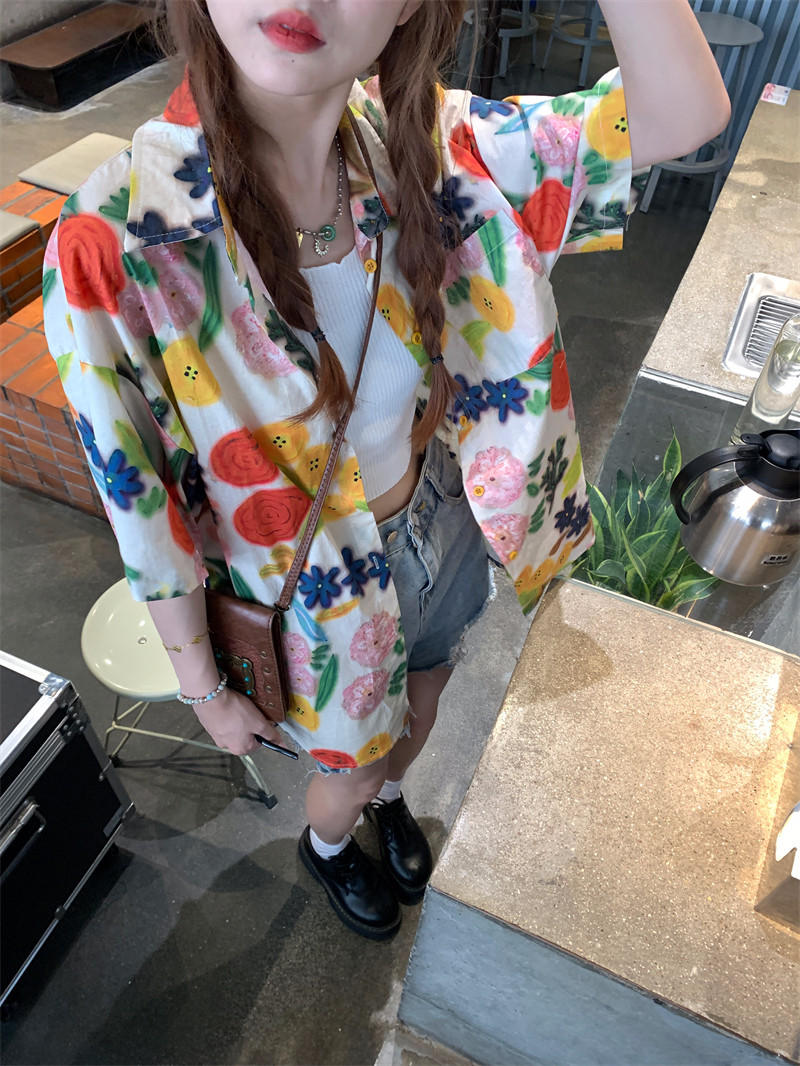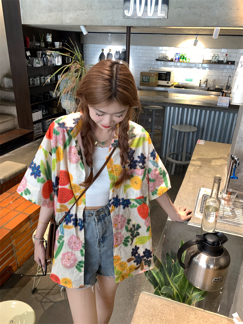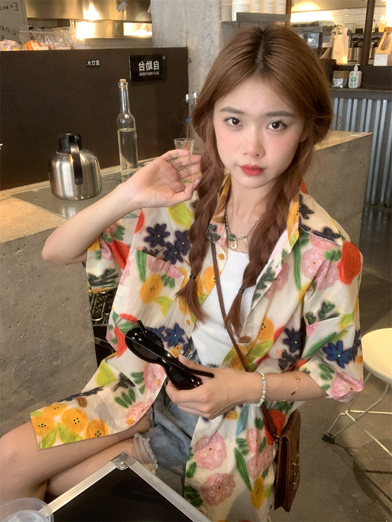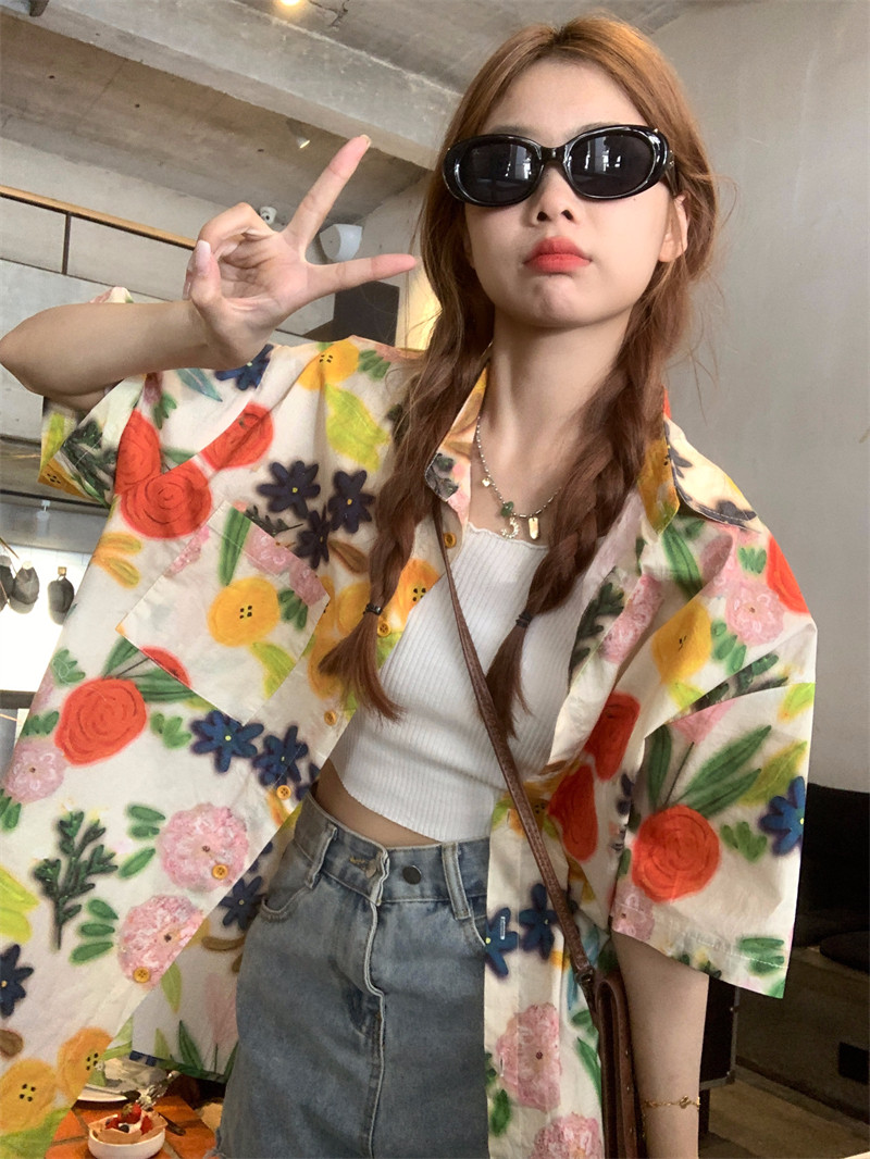 Pphome Hainan Vacation ~ сладкие праздничные цветы в Таиланде цветочные цветы короткая рубашка с разбитой рубашкой