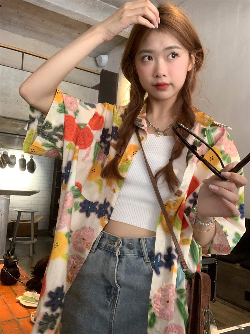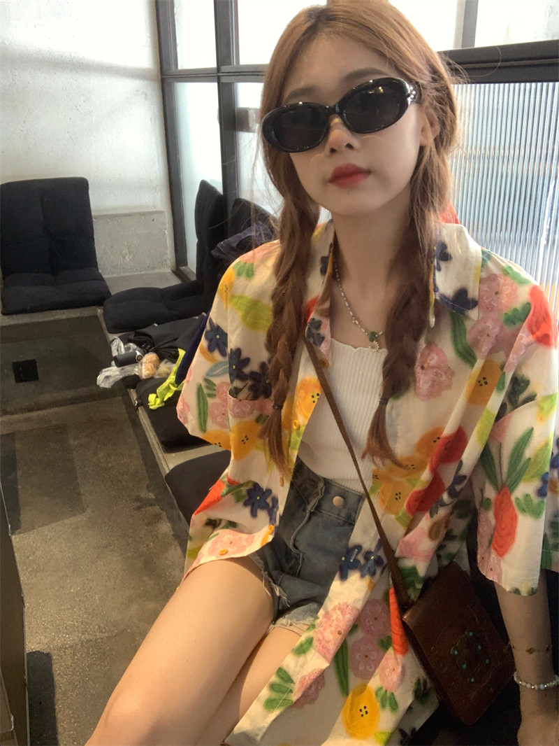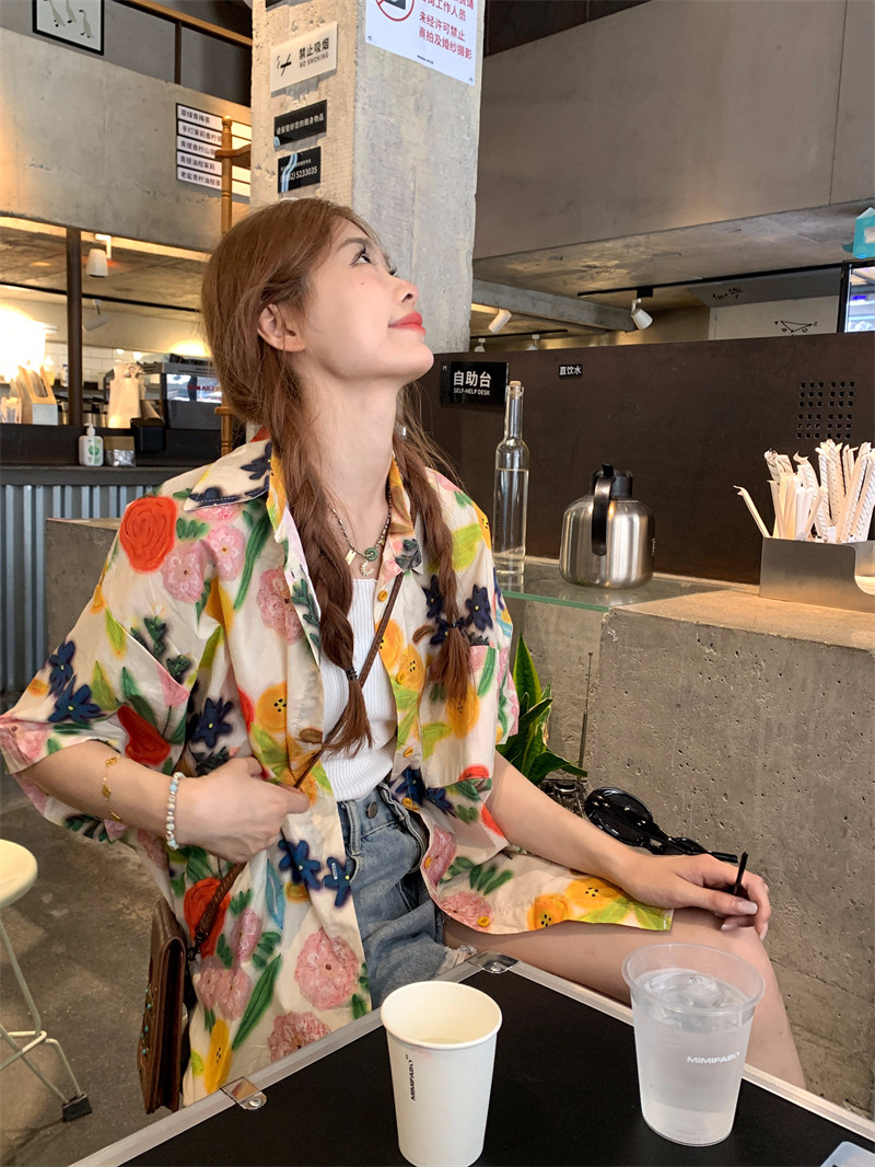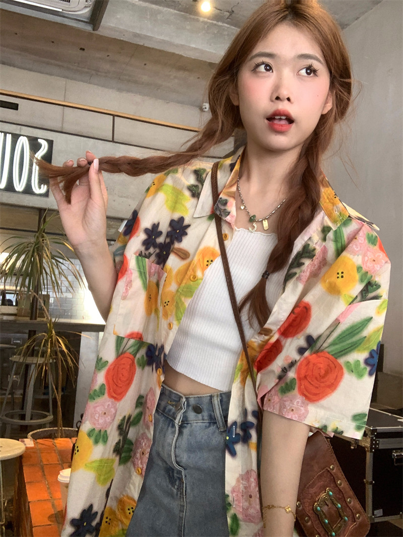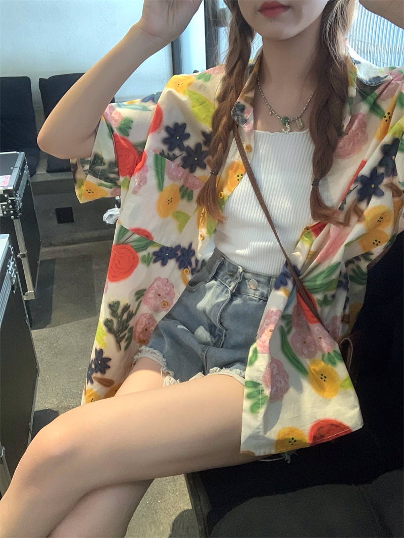 Pphome Hainan Vacation ~ сладкие праздничные цветы в Таиланде цветочные цветы короткая рубашка с разбитой рубашкой