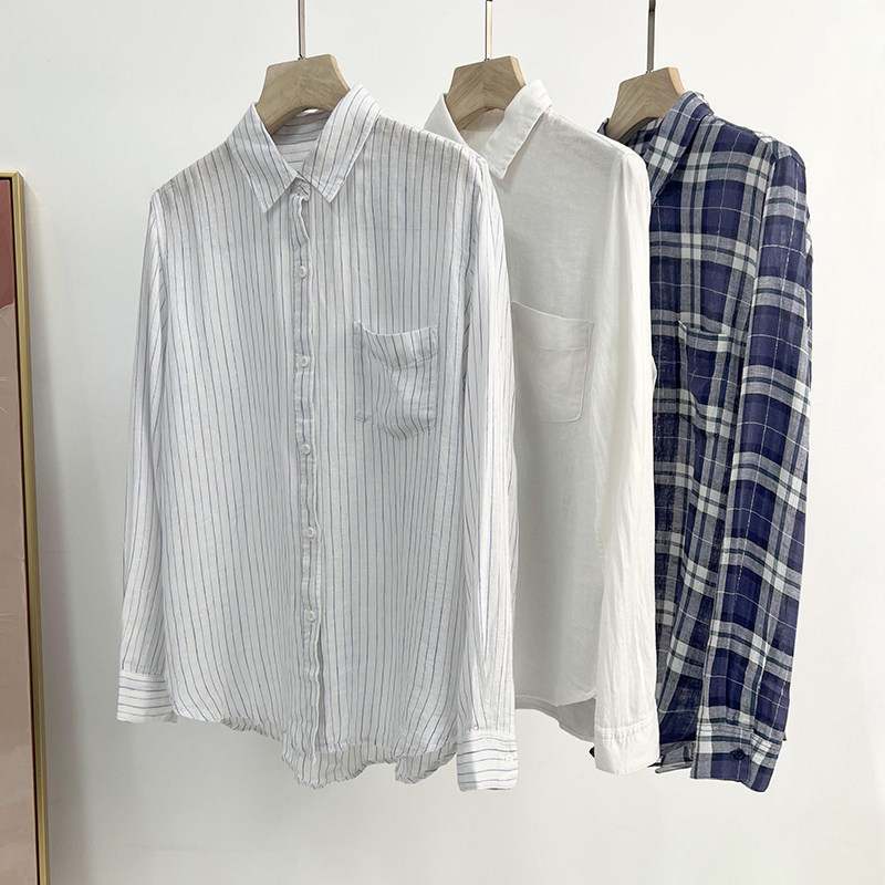 Классический комфортный дышащий тонкий лонгслив, рубашка, США, из хлопка и льна
