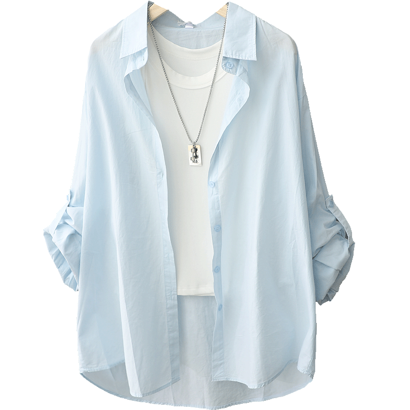 Летняя синяя легкая и тонкая рубашка, тонкий кардиган, дорожная одежда для защиты от солнца, защита от солнца
