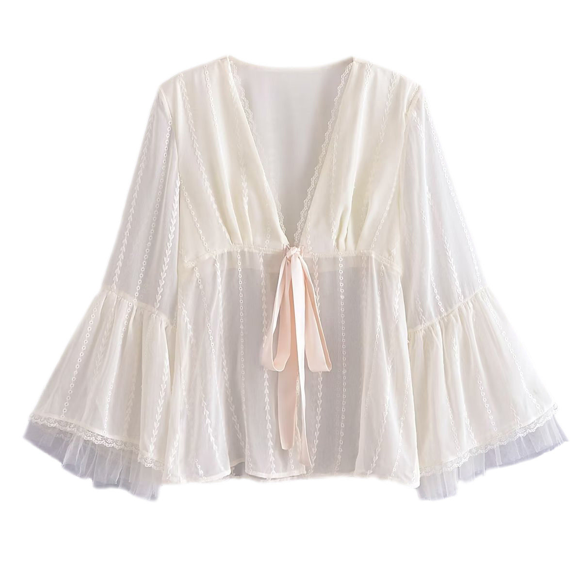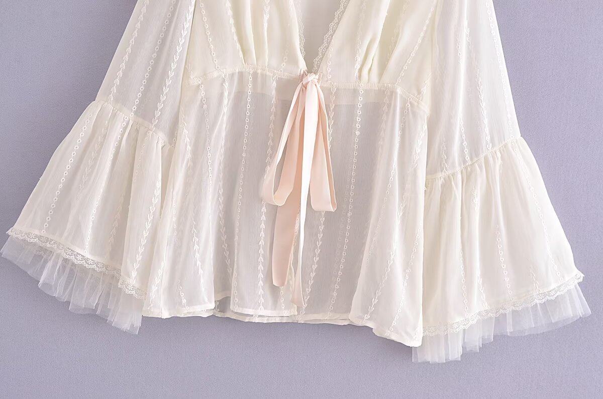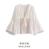 Кружевной мегафон, кардиган, рубашка, новая коллекция, европейский стиль, французский стиль, с вышивкой, защита от солнца, оверсайз