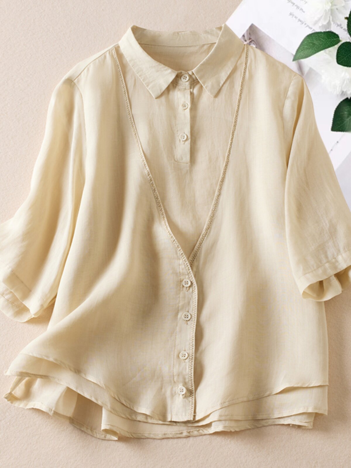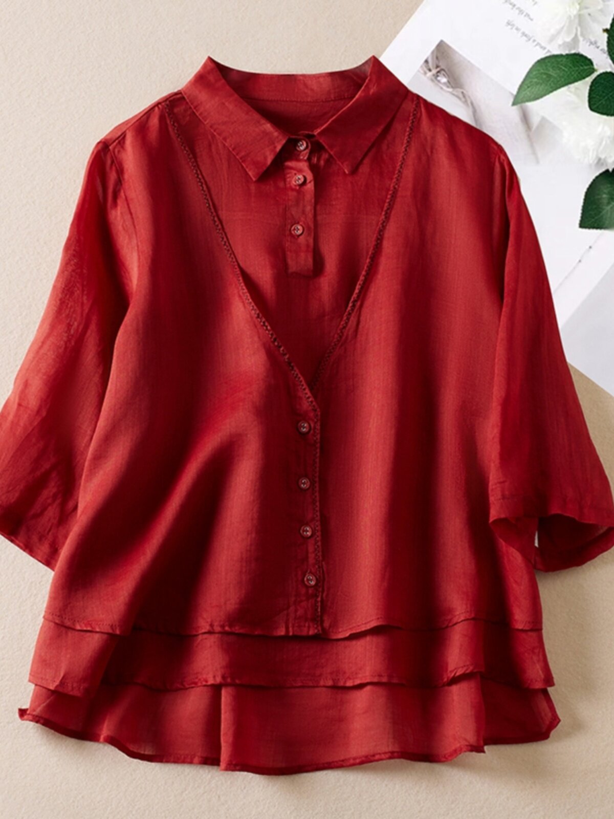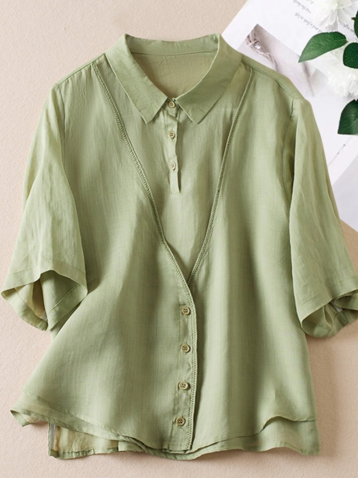 (Трансграничная торговля), летняя одежда, рубашка, комплект, большой размер, из хлопка и льна