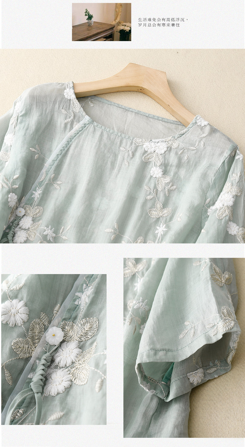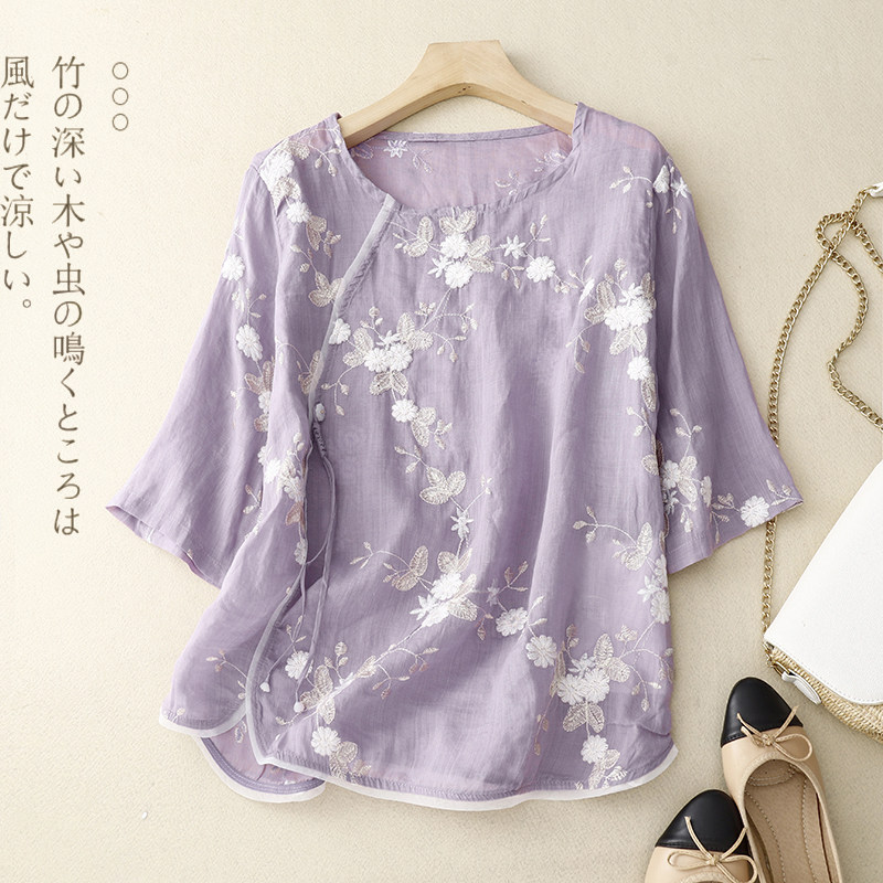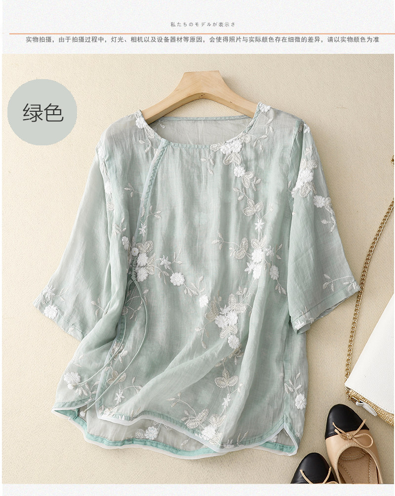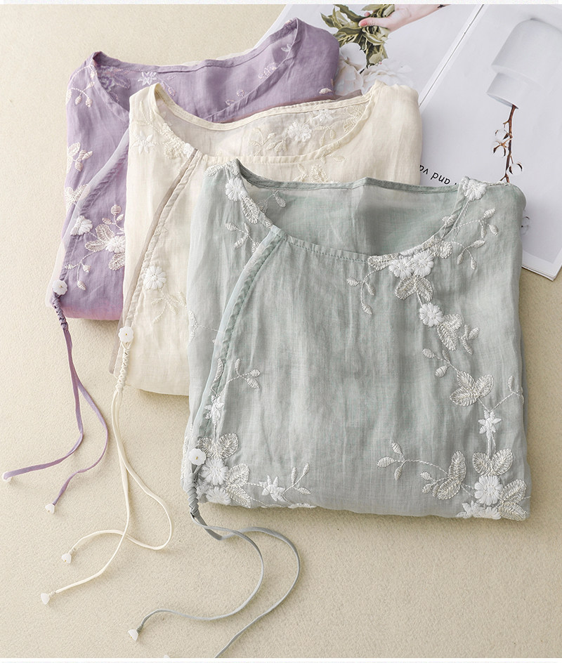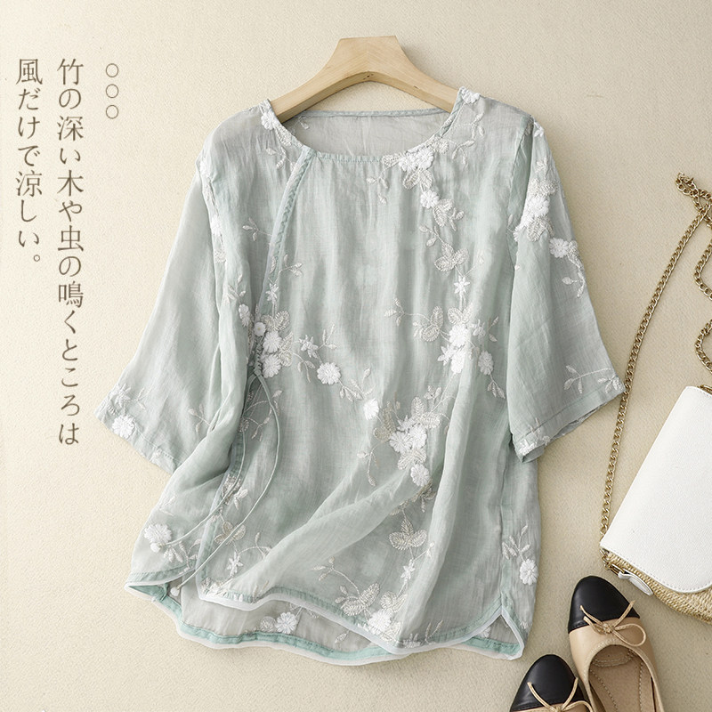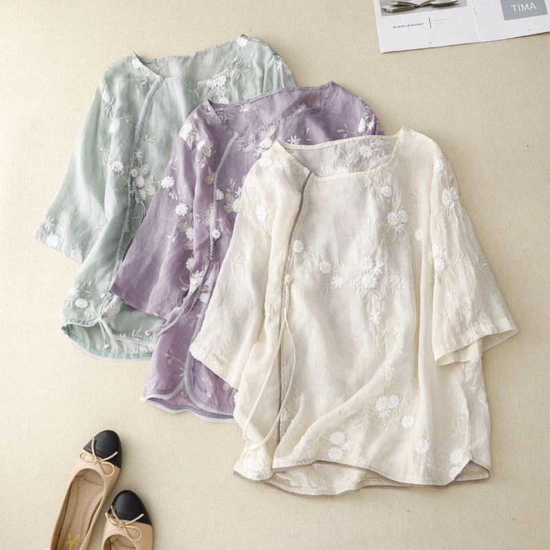 Ретро летняя рубашка, легкое ханьфу, с вышивкой, китайский стиль