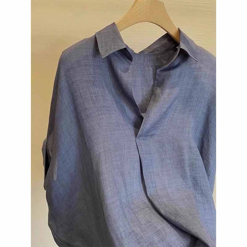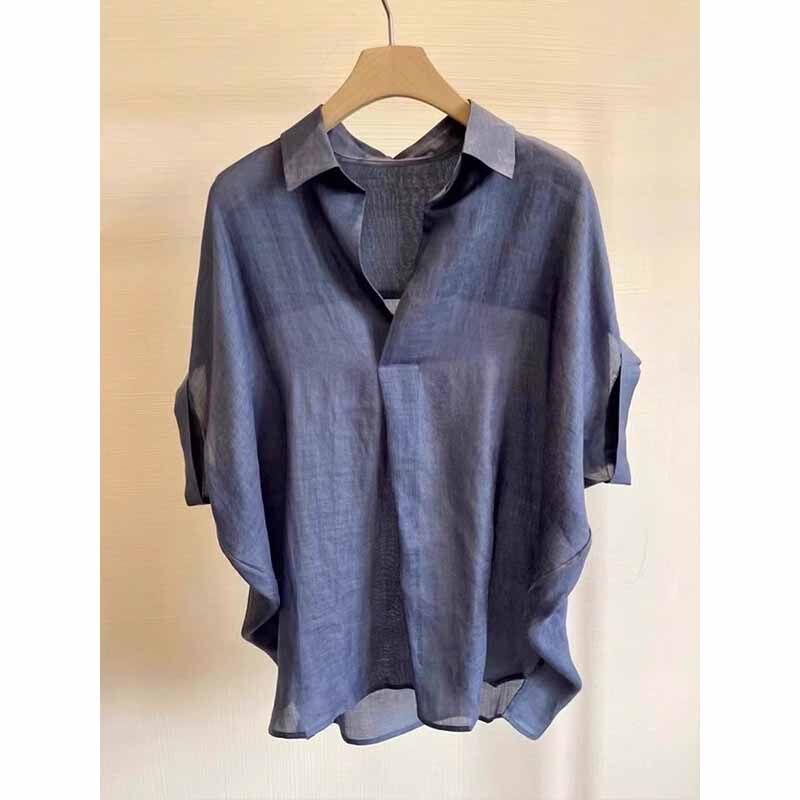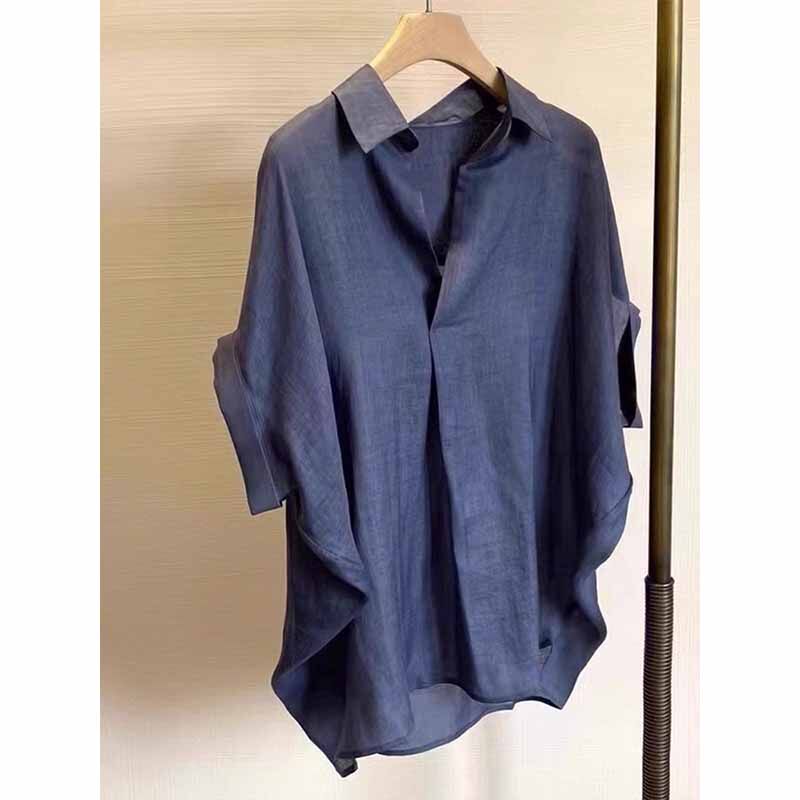 Летняя рубашка, короткий рукав, с рукавом, свободный крой, изысканный стиль