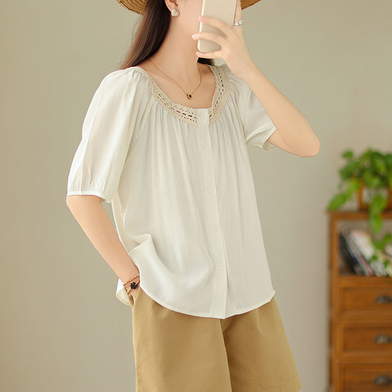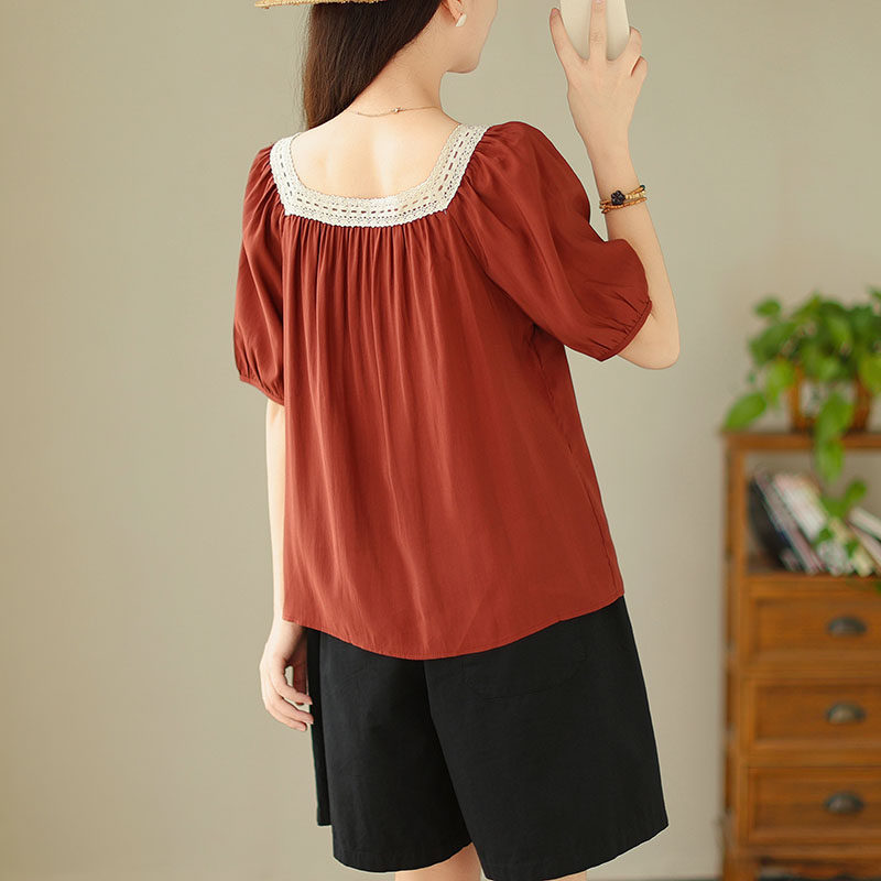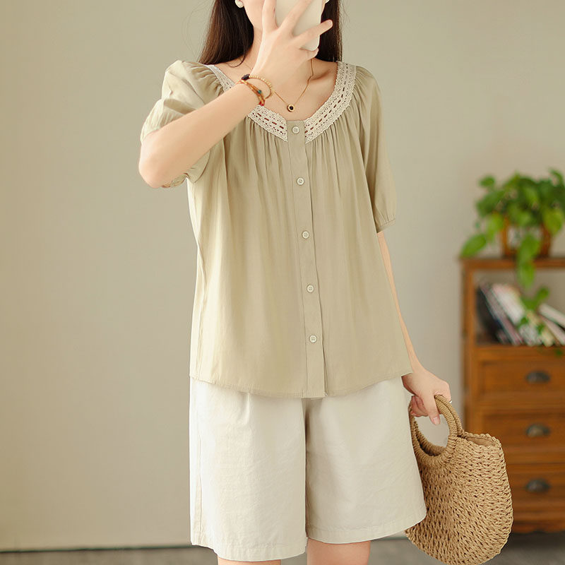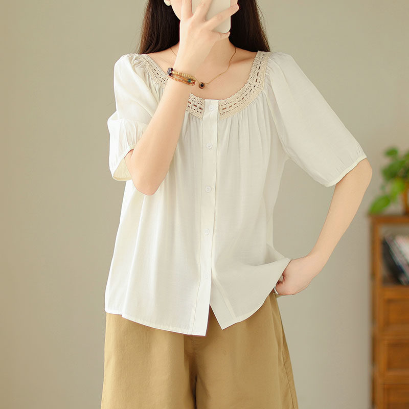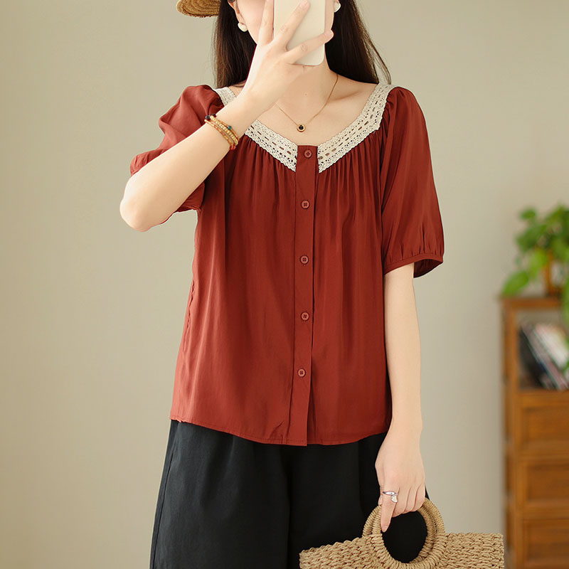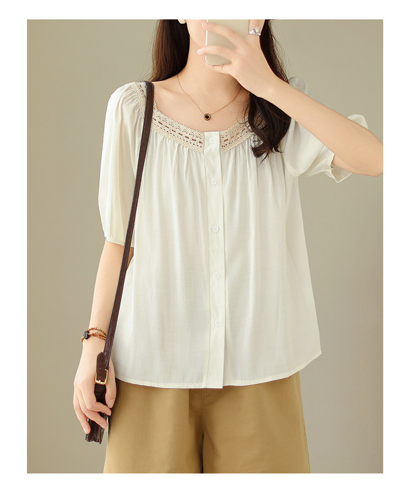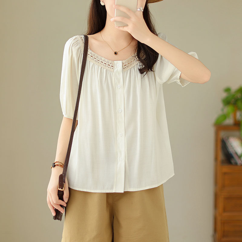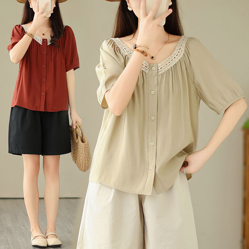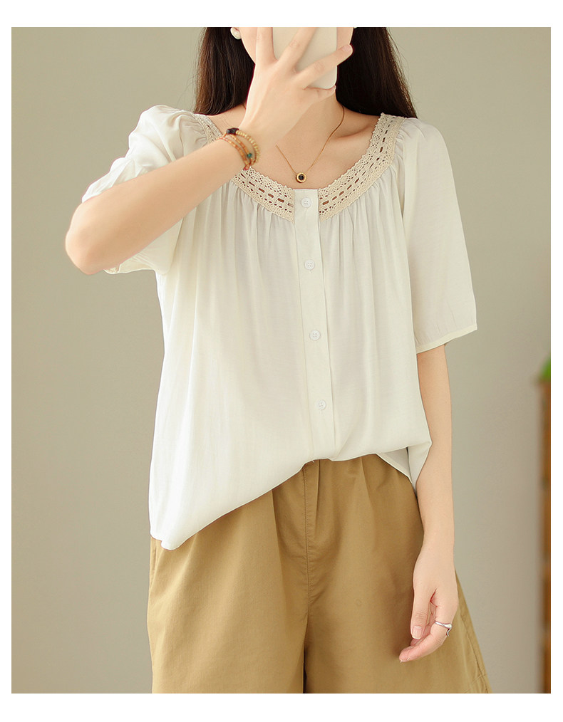 Летняя кружевная рубашка, большой размер, кружевное платье, квадратный вырез, рукава фонарики