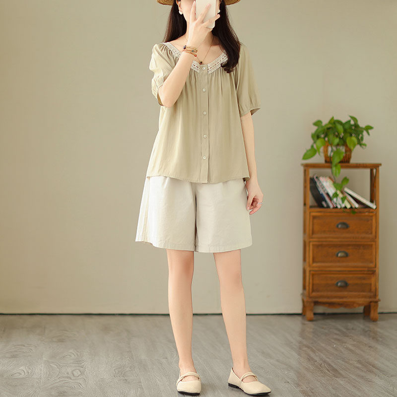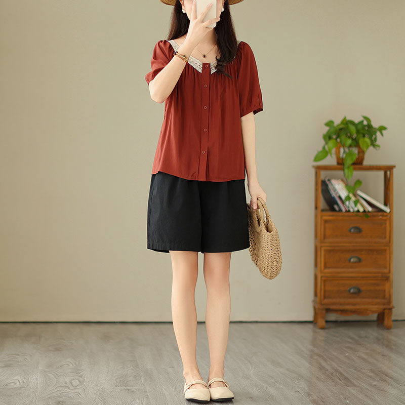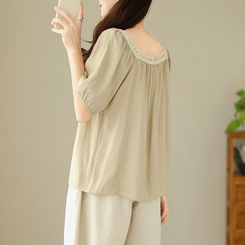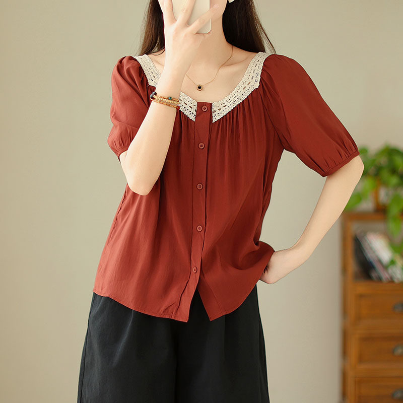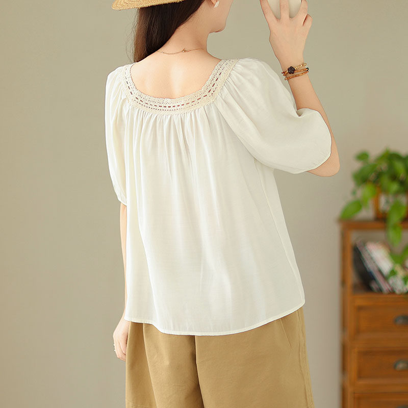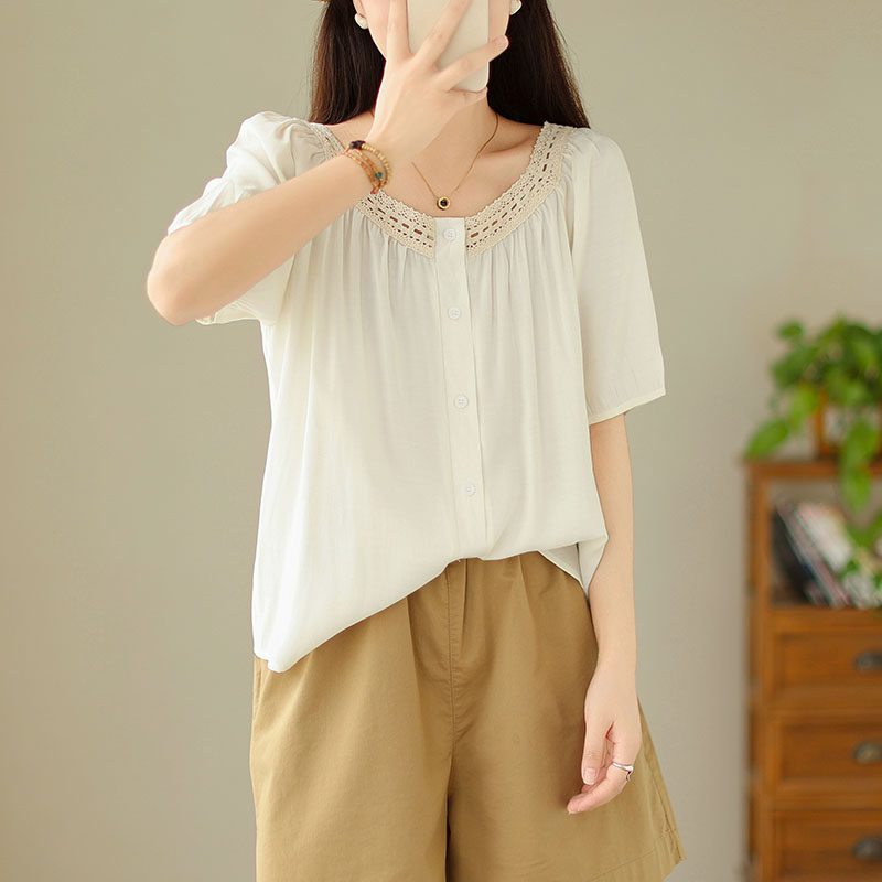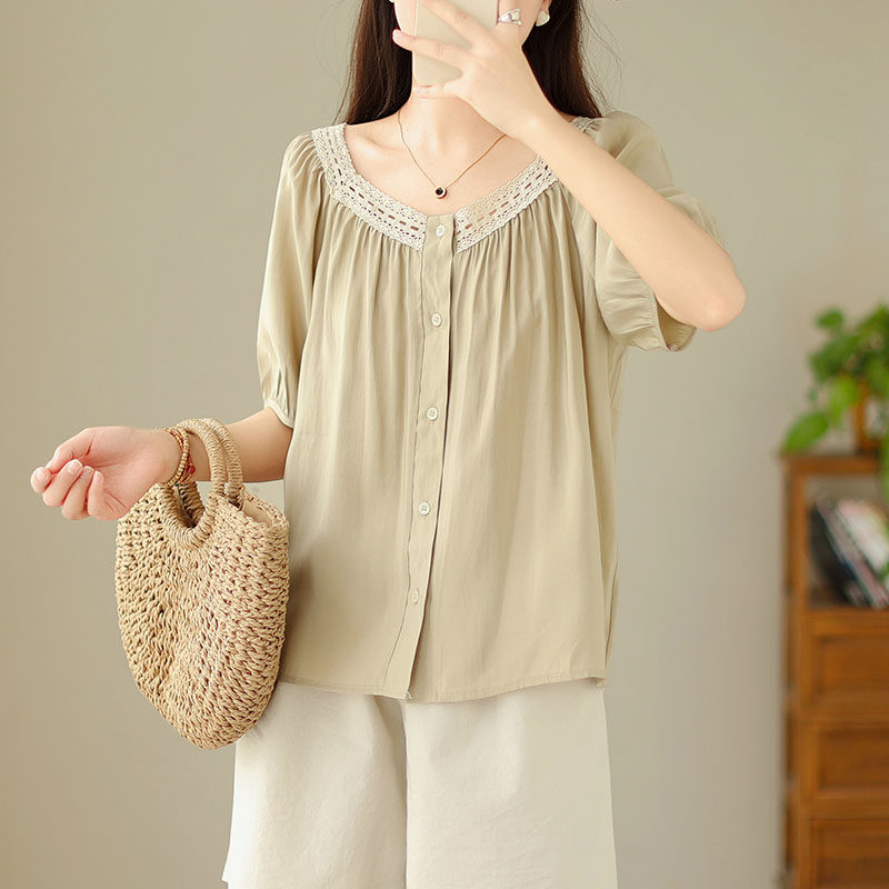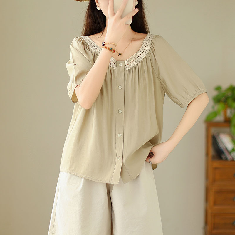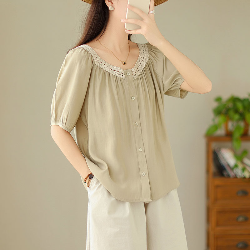 Летняя кружевная рубашка, большой размер, кружевное платье, квадратный вырез, рукава фонарики