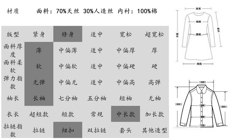 Ткань: 70 % тенсел, 30 % вискоза. Подкладка: 100 % хлопок.
