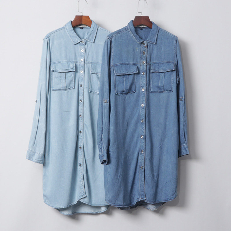 Длинный лонгслив, джинсовая рубашка, платье, с рукавом