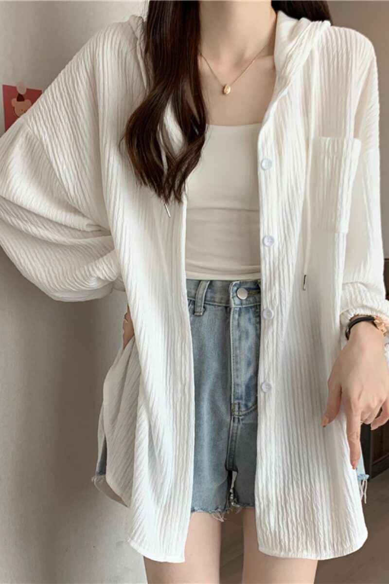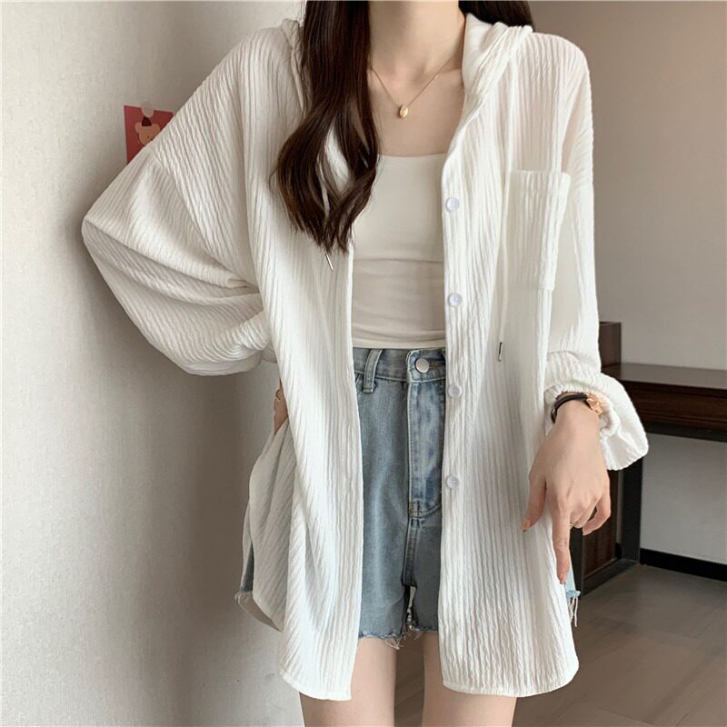 Летняя рубашка с капюшоном, тонкий лонгслив для отдыха, белая одежда для защиты от солнца, большой размер, оверсайз