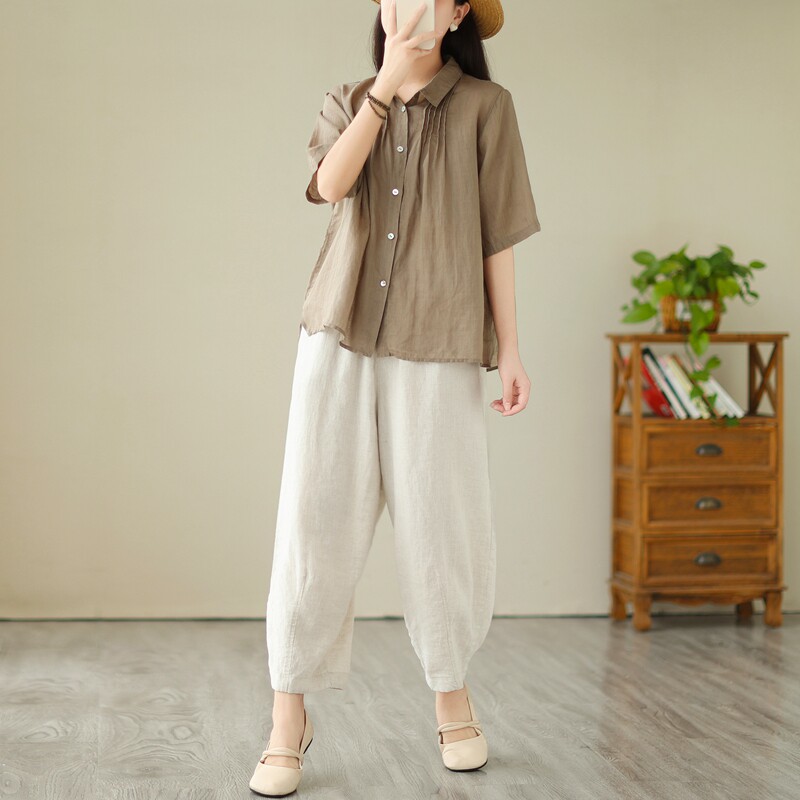 Летний орган, универсальная рубашка, из хлопка и льна, оверсайз