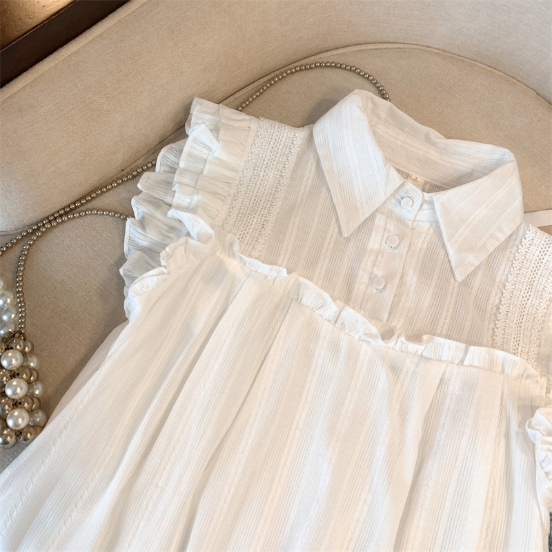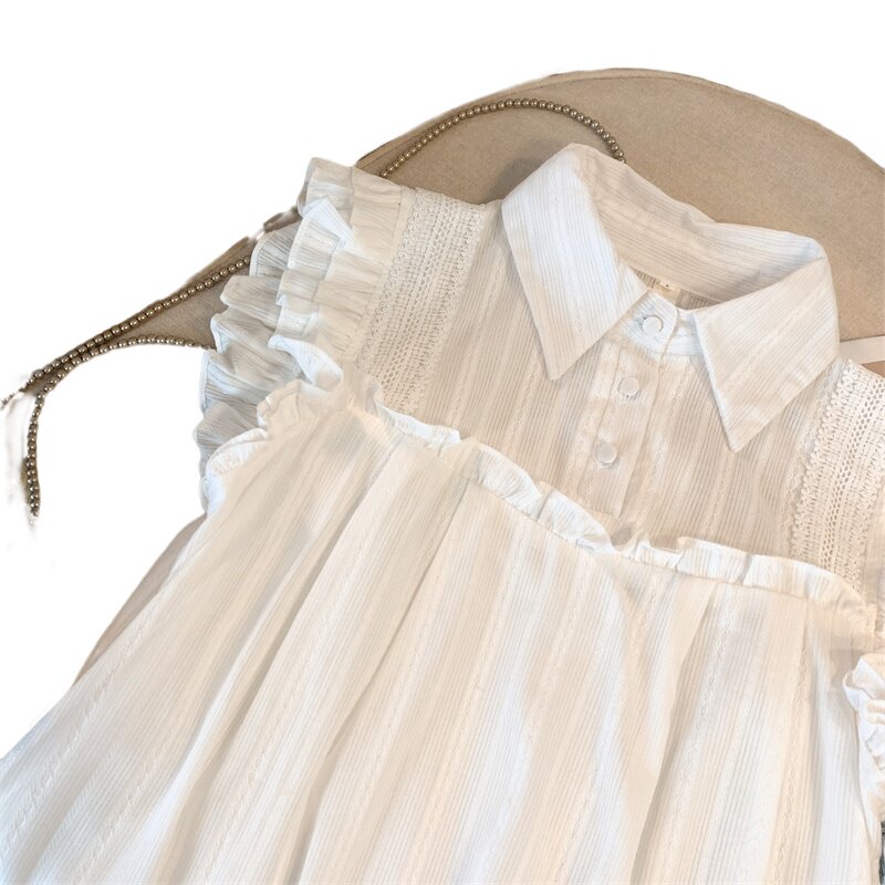 Шифоновая летняя рубашка без рукавов, шифоновый жилет, воротник поло, изысканный стиль