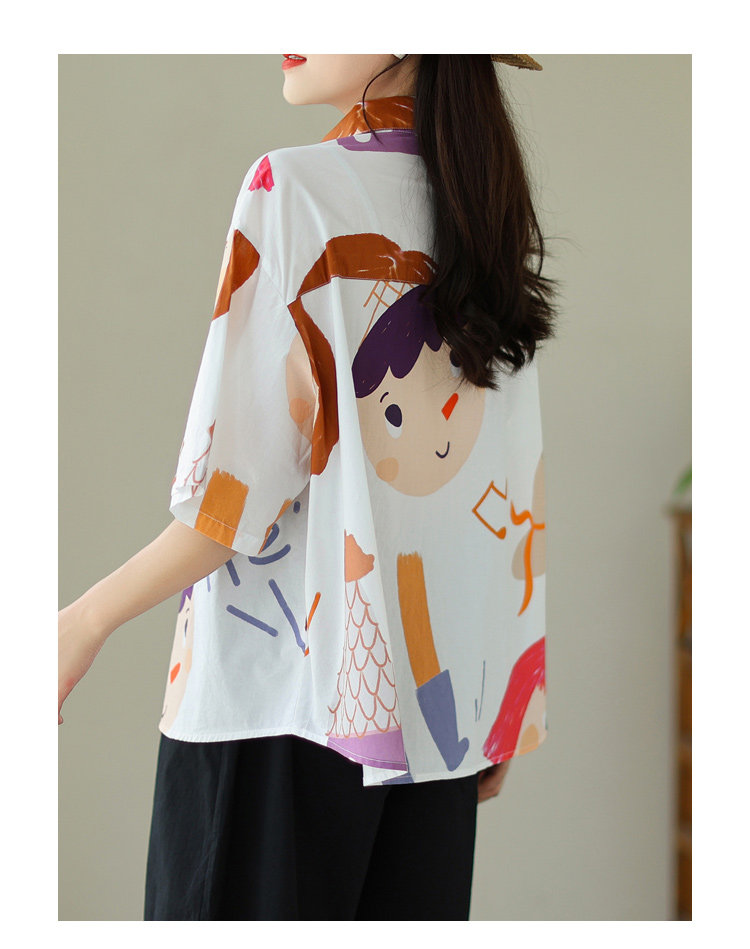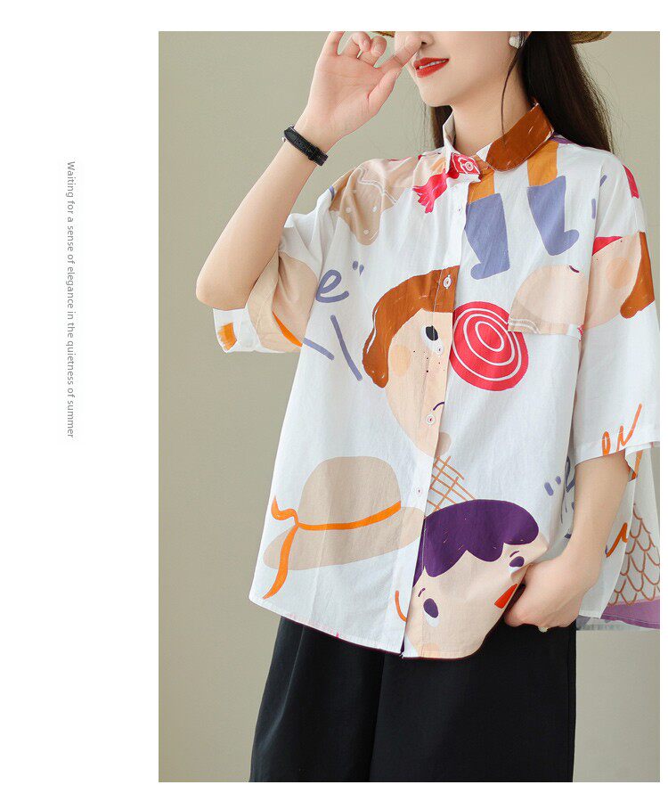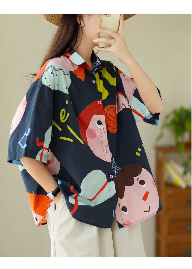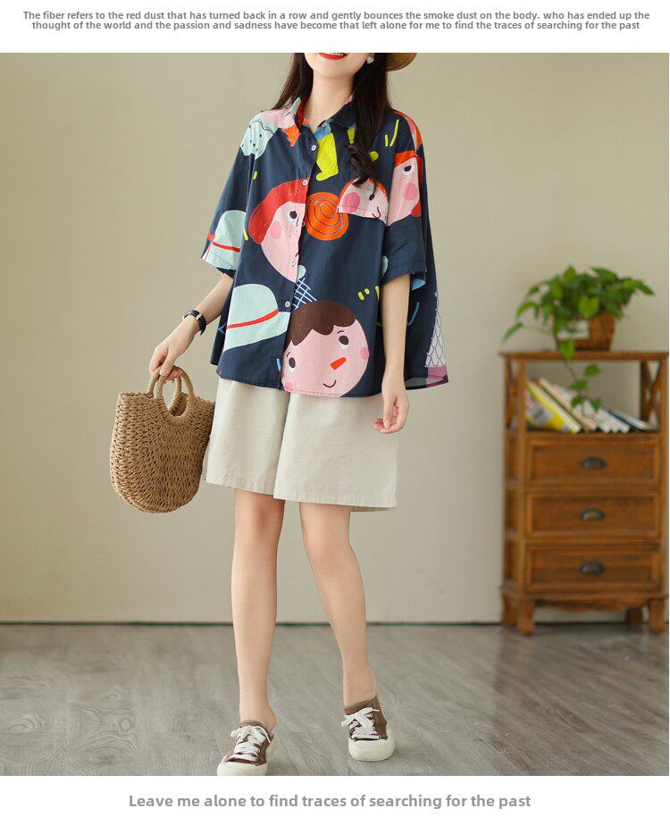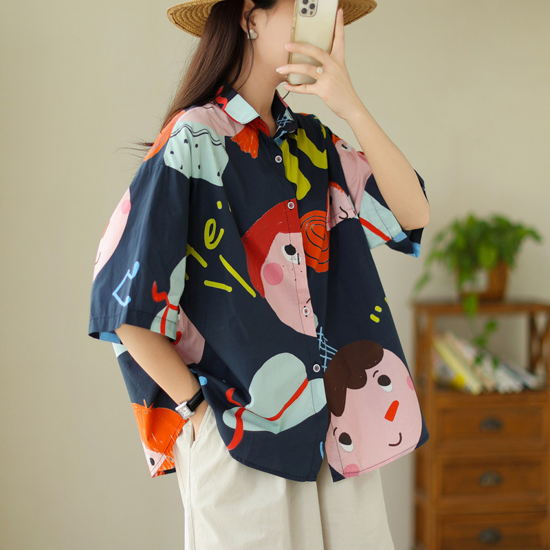 Большая брендовая скидка, французская оригинальная ретро-рубашка в стиле Харадзюку с принтом граффити, женская летняя рубашка большого размера с покрытием живота