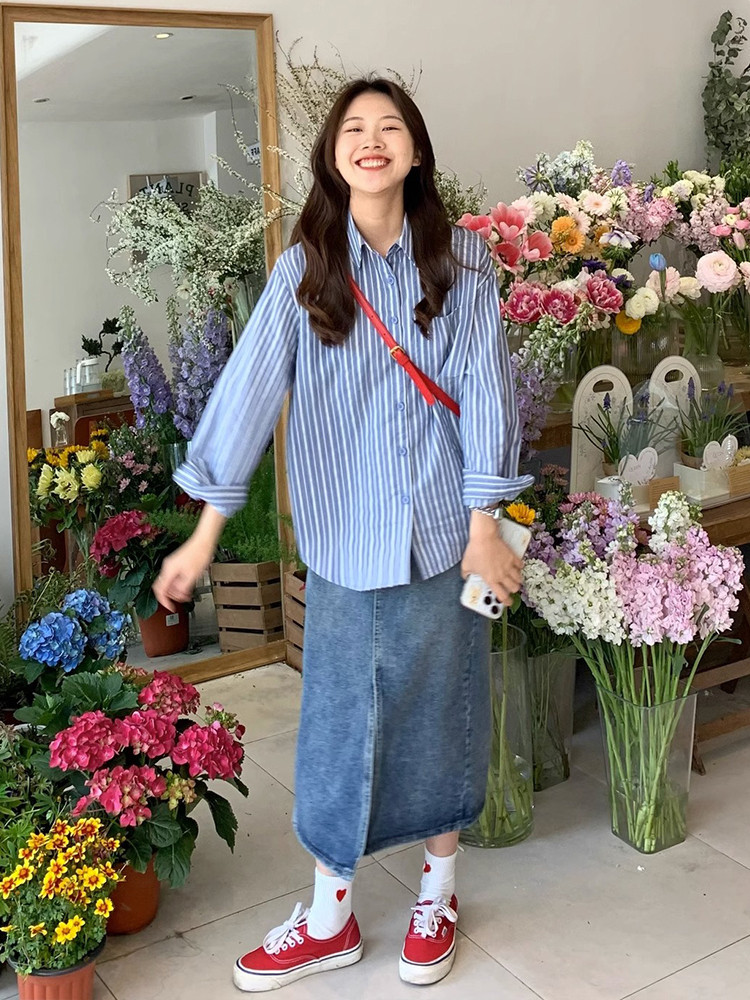 Тонкая синяя осенняя рубашка, куртка, защита от солнца, коллекция 2023, французский стиль