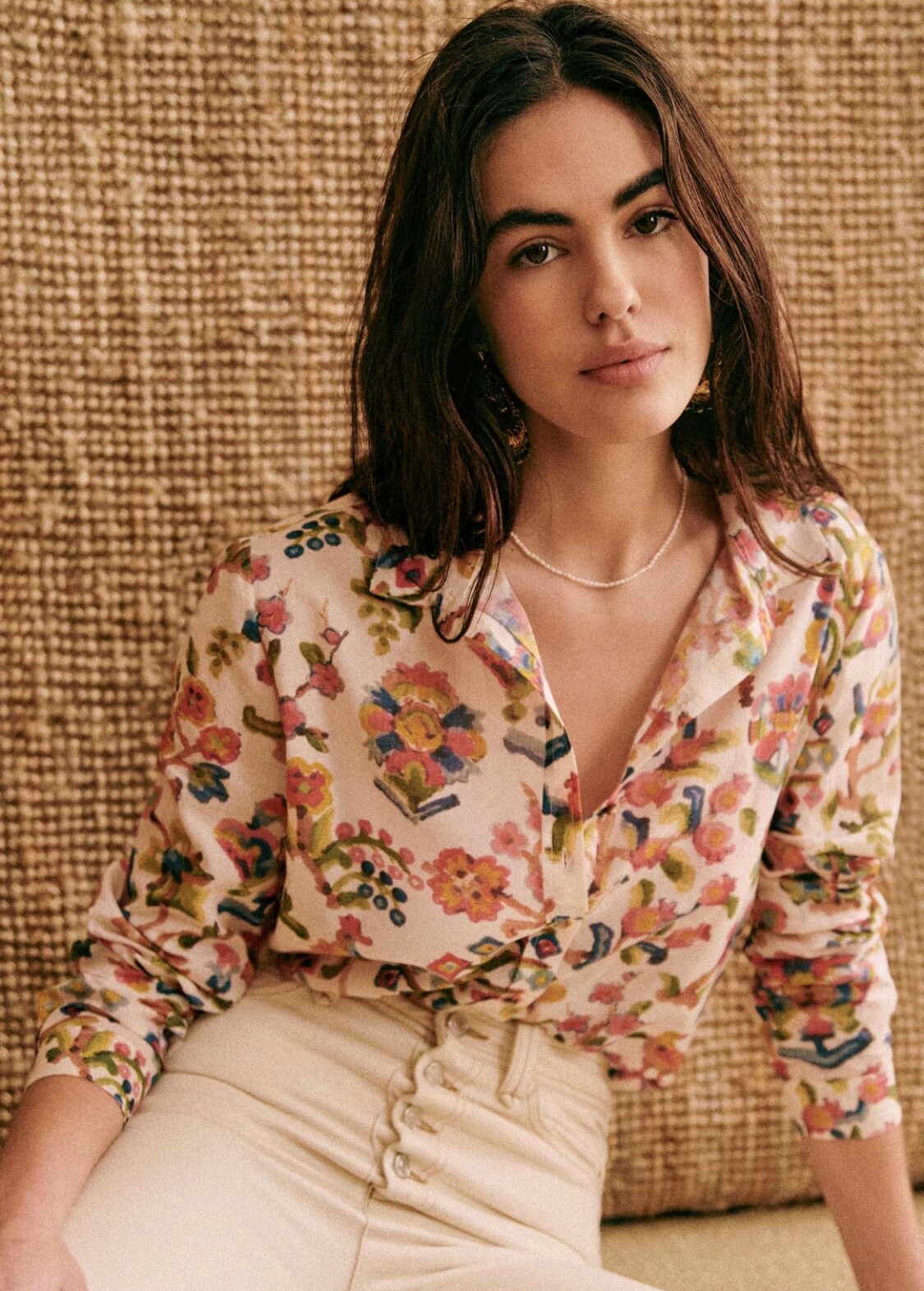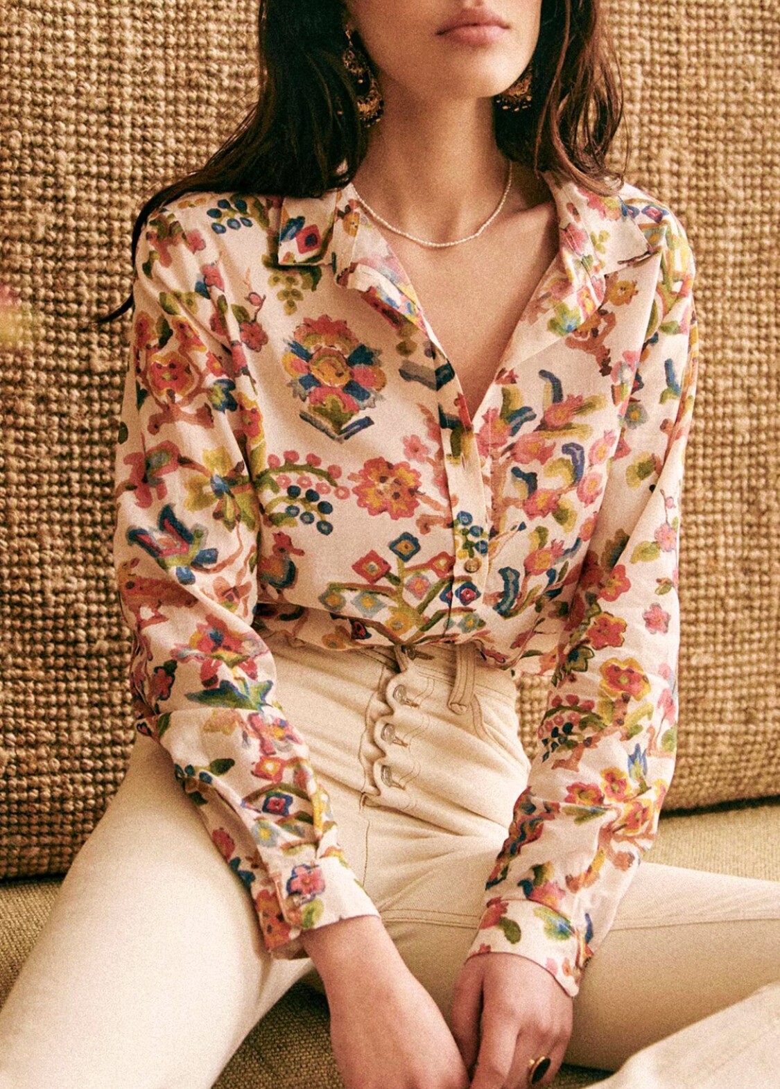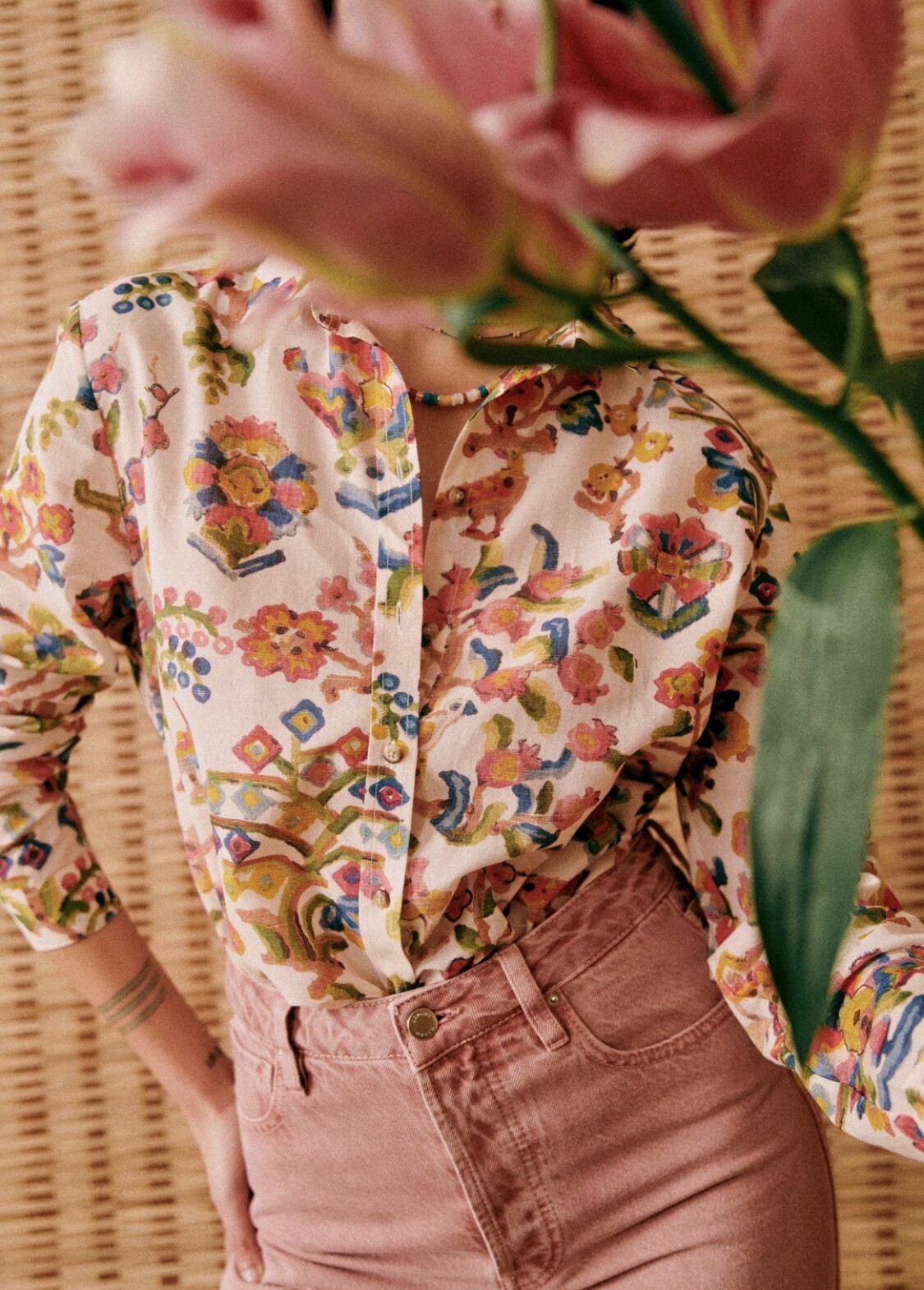 Хлопковая рубашка, французский стиль, цветочный принт